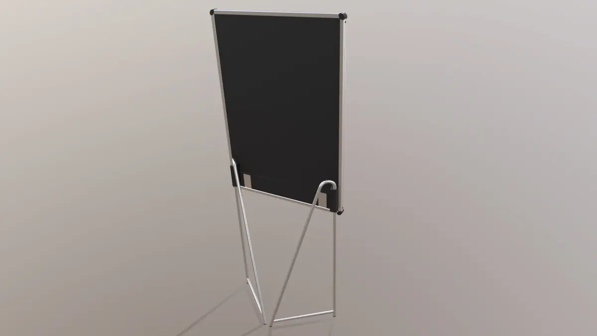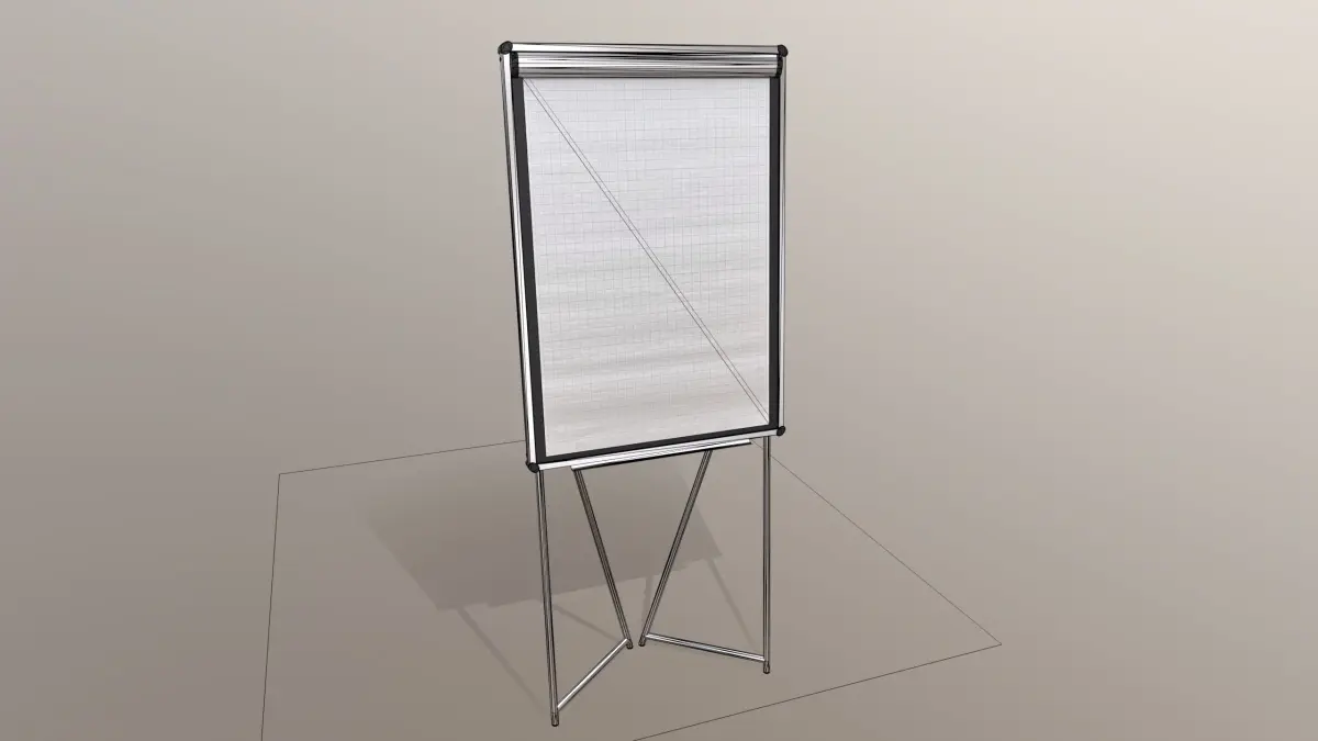 Model of an office or conference room flipchart with easily editable paper sheet texture, customizable even with just a windows image viewer (demonstrated in video preview).