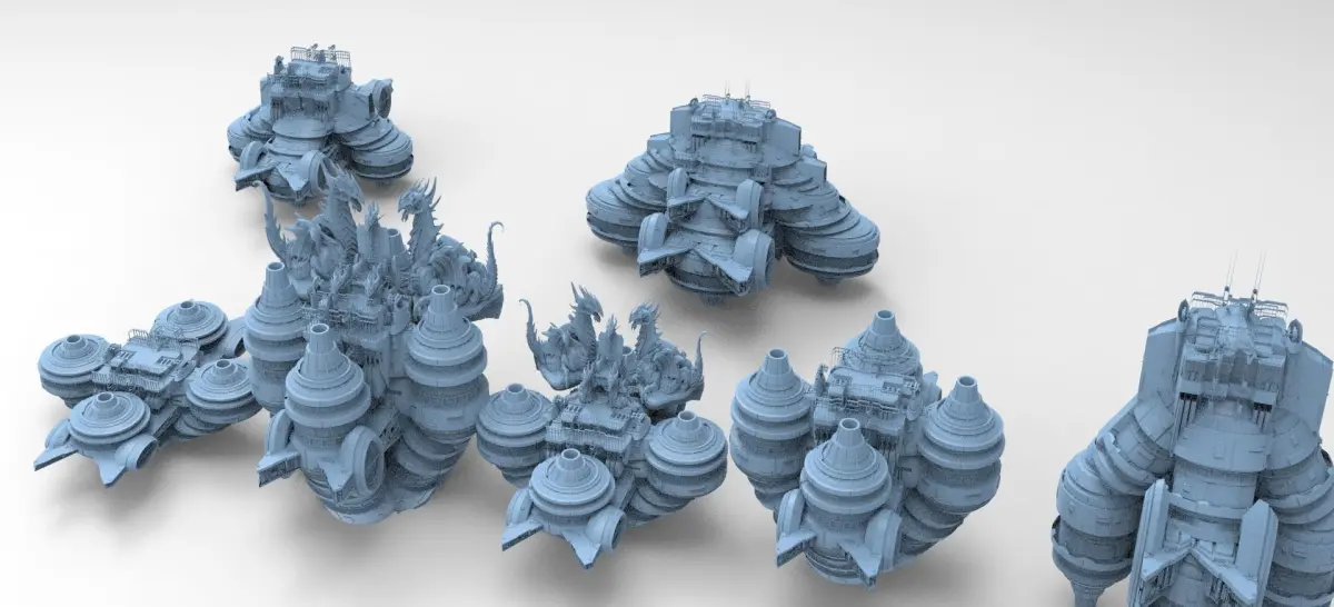 Floating Desert Dragon Throne platform 7 versions 3D model