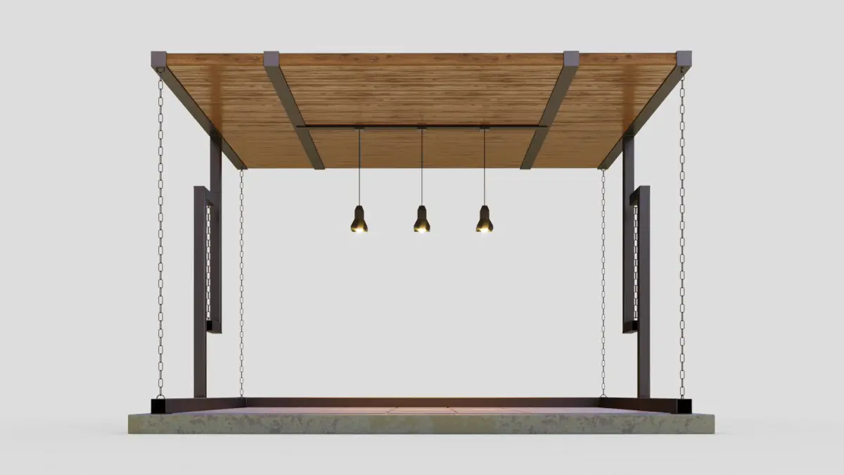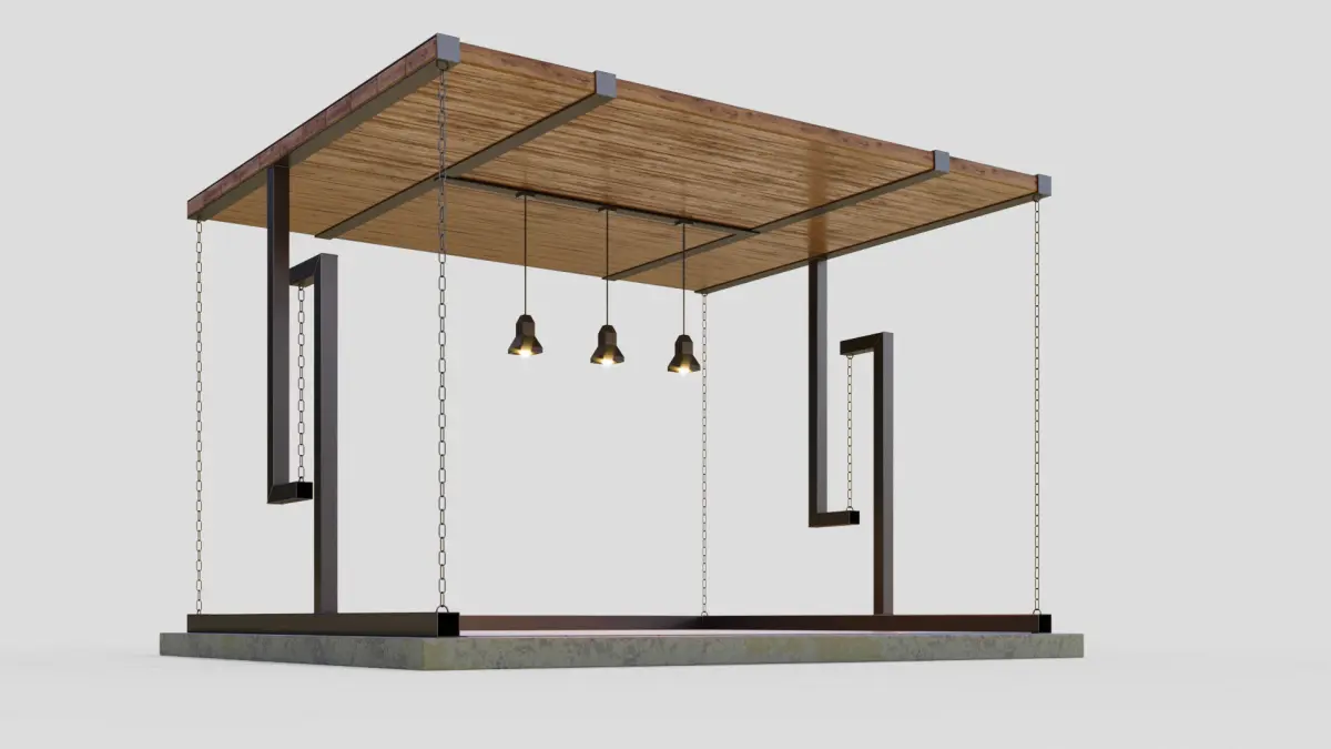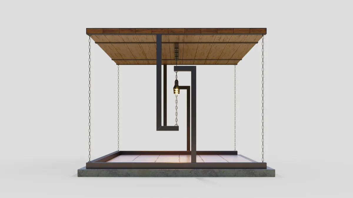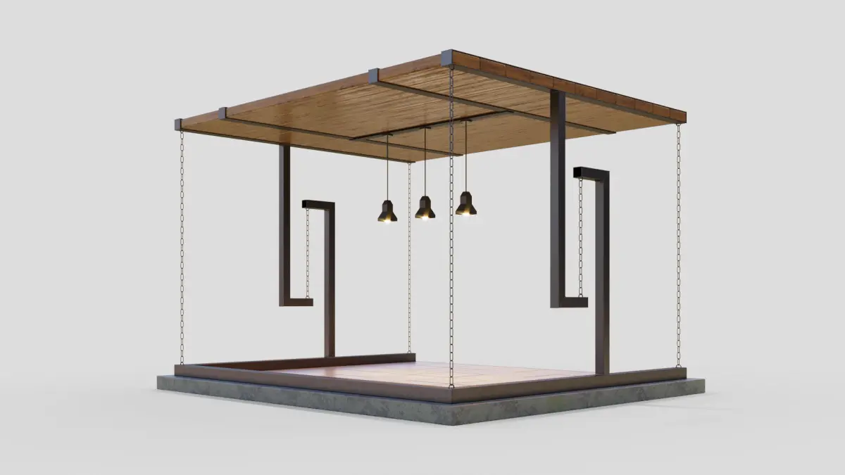An unusual gazebo with a supporting structure tensegrity — of chains and metal assortment.Stage size (WxDxH) 4500x3900x2980 mm