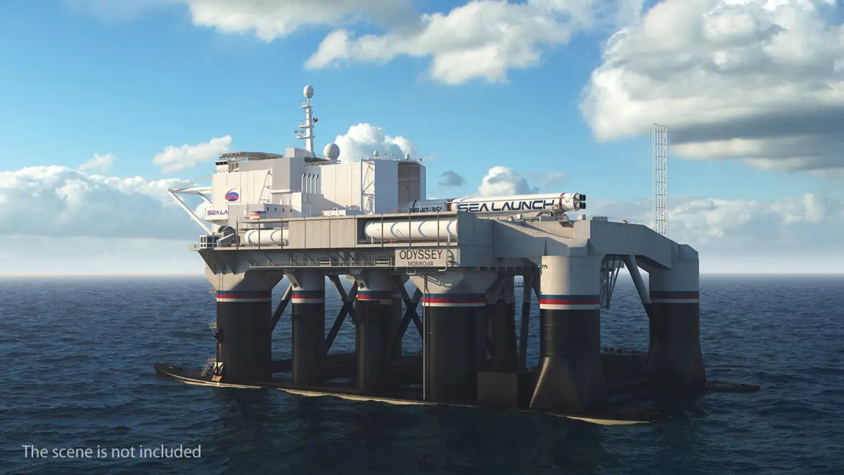 Designed as part of a mobile maritime spaceport, this platform provides a stable base for rocket launches in international waters. The structure includes tall stabilizing columns, a control deck, and support equipment necessary for space mission operations. Its adaptable design allows for various launch configurations and can accommodate different types of rockets.
