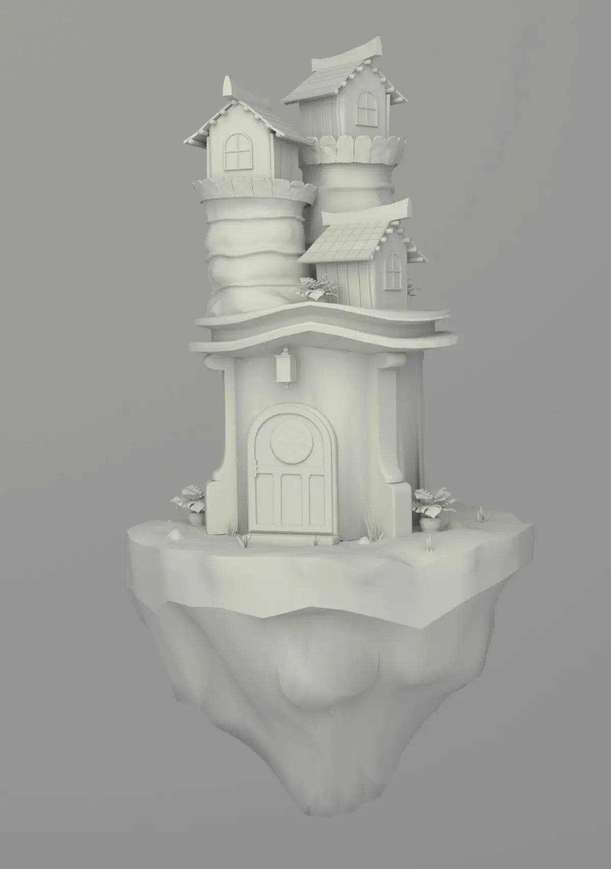 A floating tavern scene. The background is an image texture. Blender cycles materials used