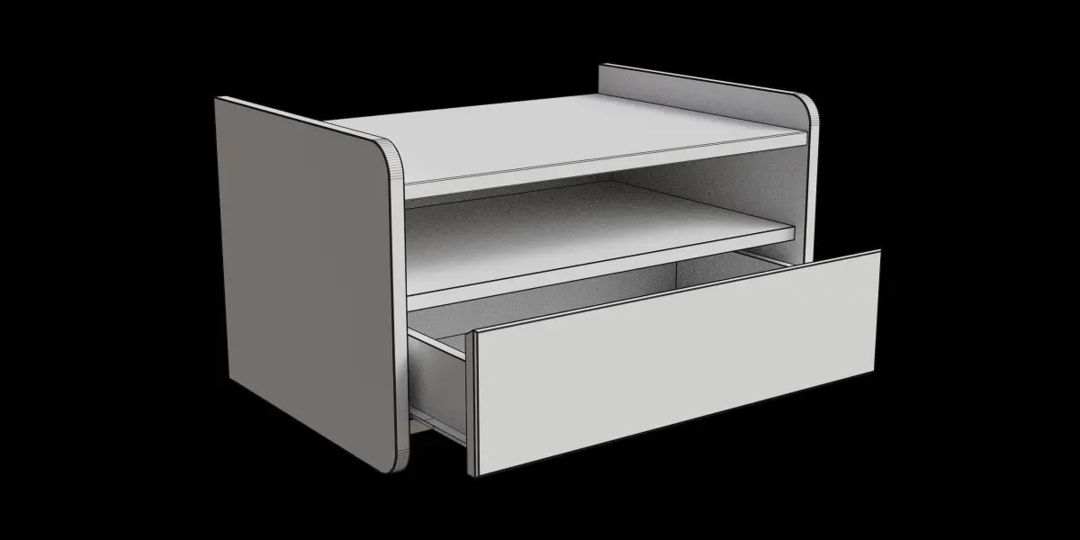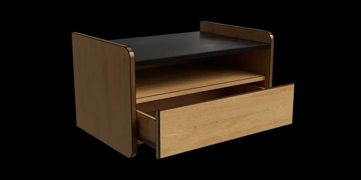 This model is a floating nightstandIt's suitable for decoration in your bed roomThe file consists of blend file format with 8k resolution baked textures:_ Base color_ Metalness_ Roughness_ Normal