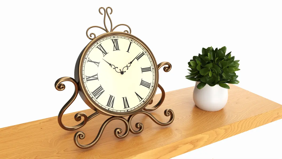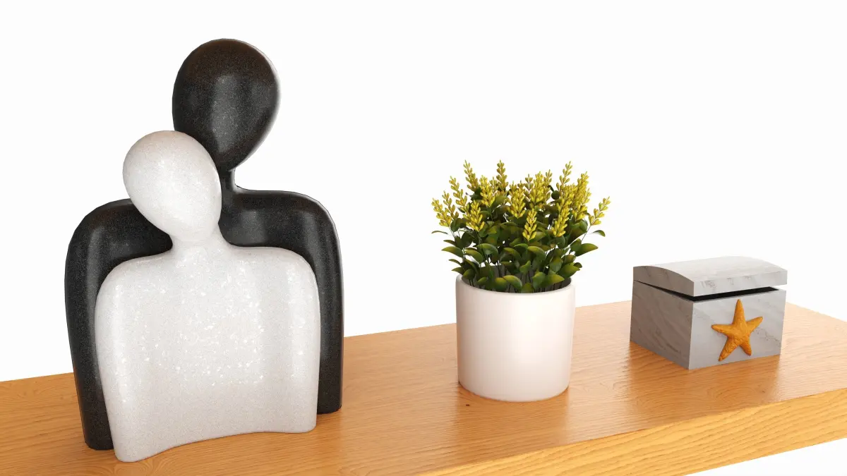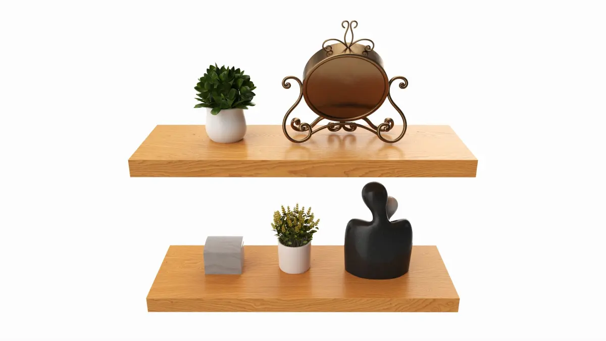 Floating Wooden Shelves with Decorations and Plants 3D model