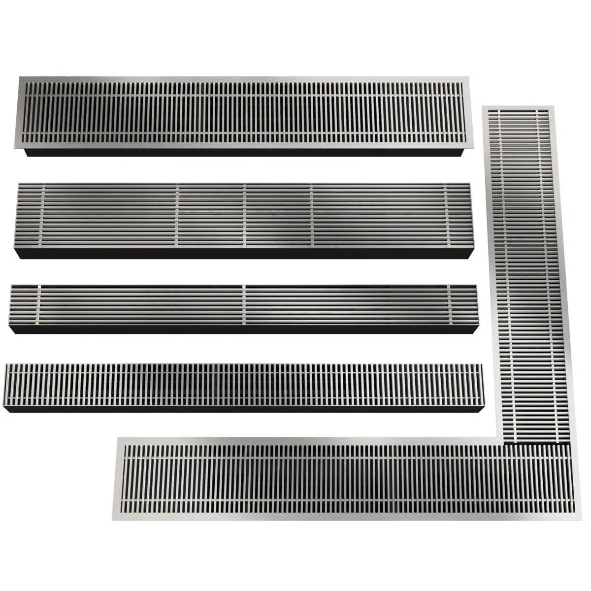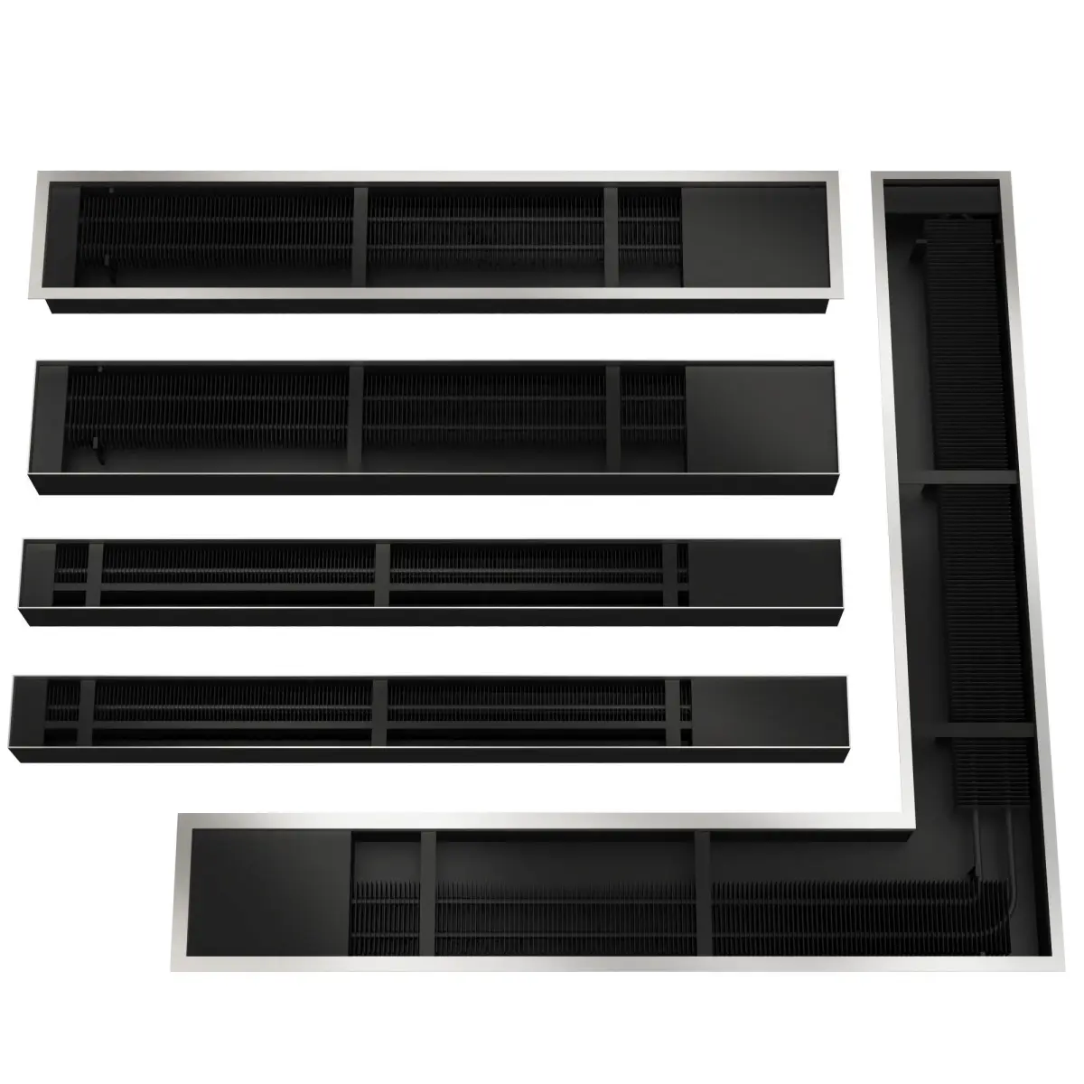 Floor convectors with various types of grilles and control panelsWide 1200x200 cmNarrow 1200x120 cm