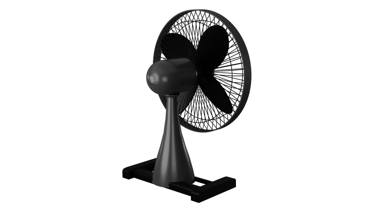 A sleek black floor fan with a modern design, featuring three sharp blades and a sturdy base, perfect for cooling down any room in your contemporary home.