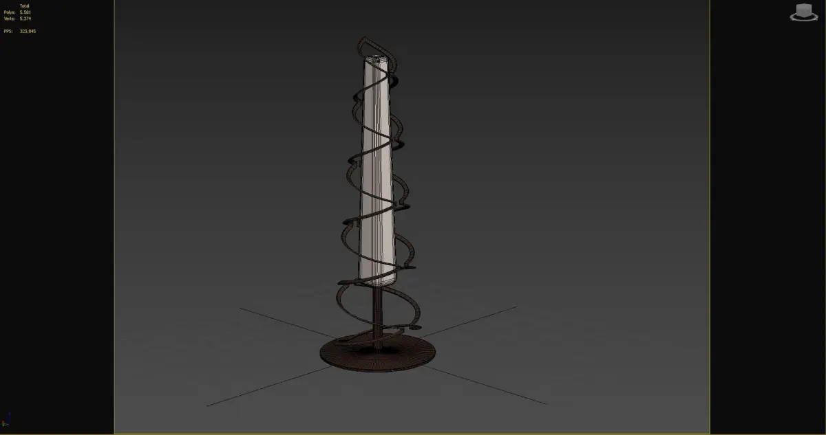 Total Length 1000 mmFloor Helix Lamp**Poli: 5581Vert: 5374**You can lower the poly value :)There is no other example. It is my own design.Don't forget to use smoothing for the spiral (Turbo Smooth)