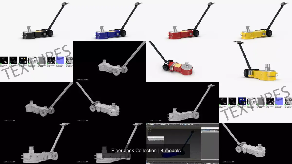 This Floor Jack Collection is a high quality, photo real collection that will enhance detail and realism to any of your rendering projects. The models has a fully textured, detailed design that allows for close-up renders, and was originally modeled in 3ds Max 2013 and rendered with V-Ray. Signature image scene doesn''t included. All models in this collection lays in separate scenes