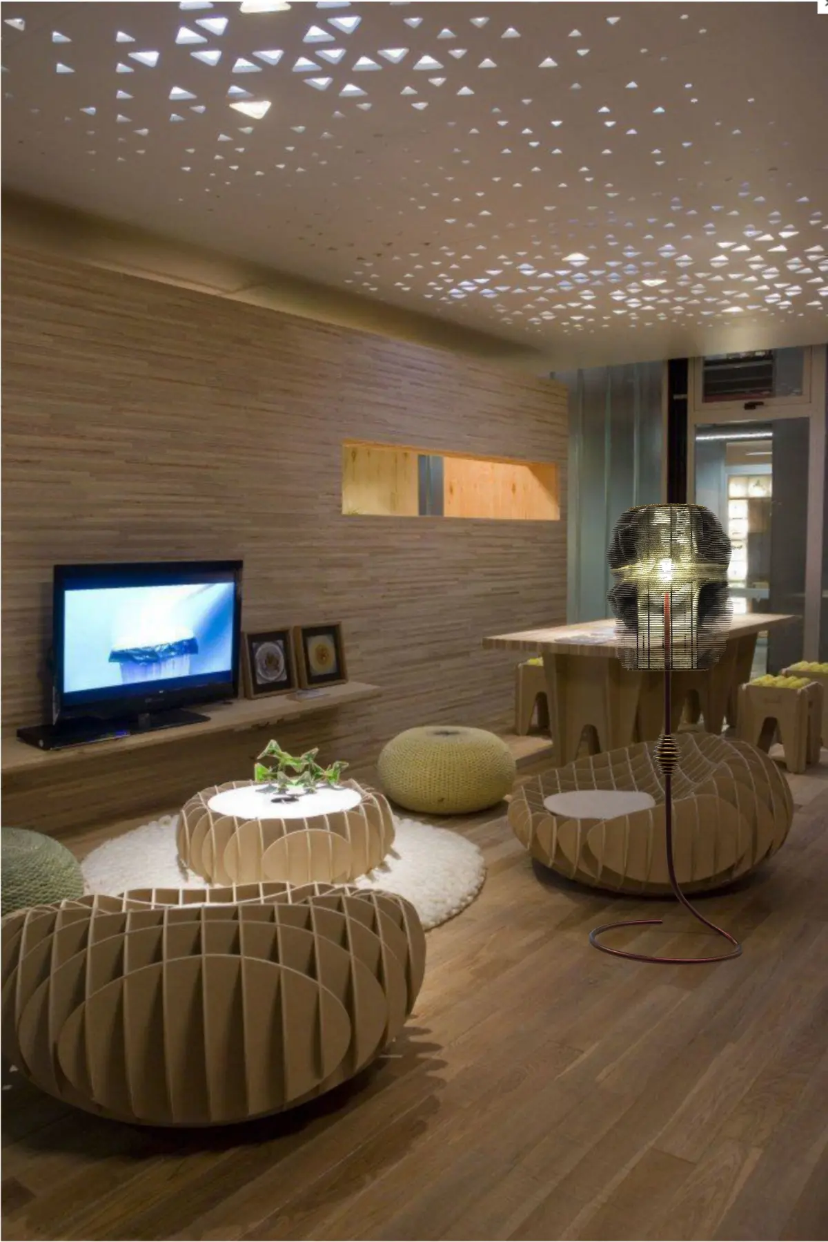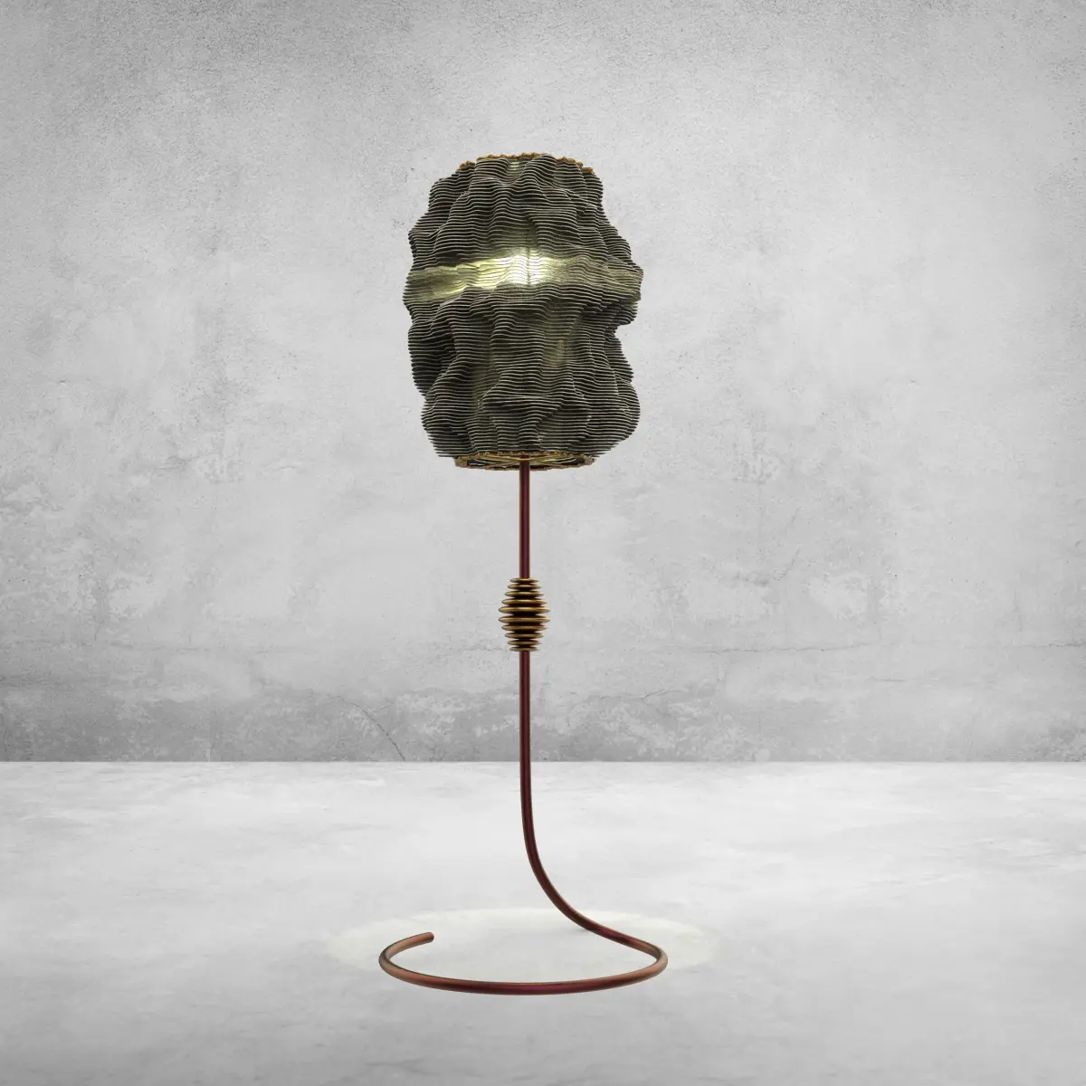 A simple Parametric Floor lamp made out of silk fold pattern creating it more fluidic shape, and model is sliced into contour pattern to create more linear light and shaded environment.
