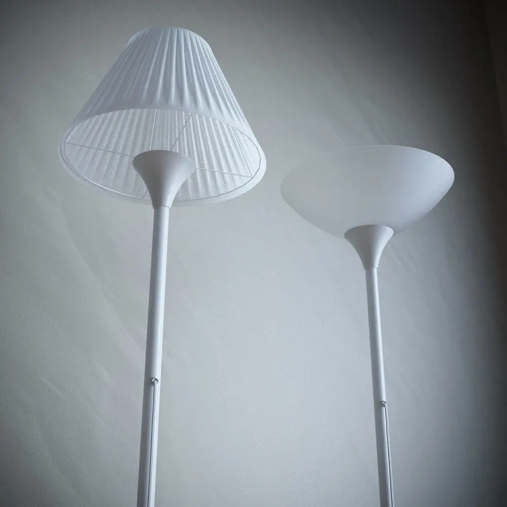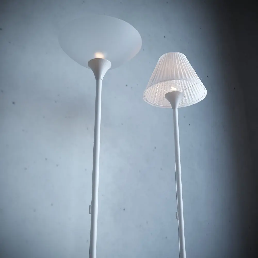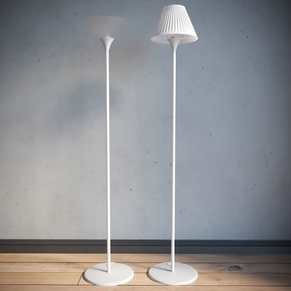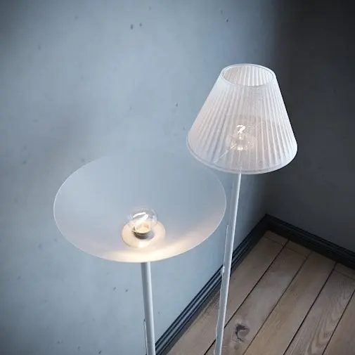 A modern floor lamp of white color, simple and curly fits into any interior, there are two options for a lampshade to choose from, made in minimalism, simple and stylish. Height 170cm, base metal material. the archive contains all the possible formats of the model (.obj; .mtl; .3ds; fbx; .max_2019; max_2016)