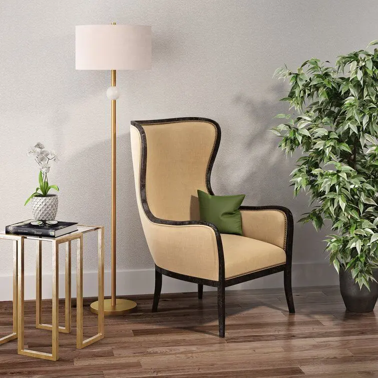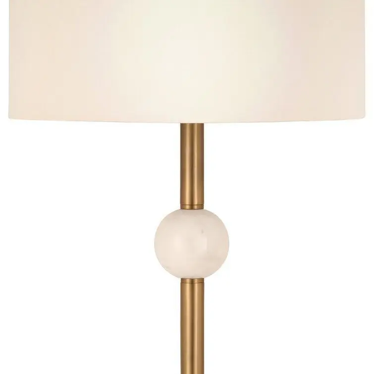 - Handcrafted in a luxe antique brass finish with an alabaster adornment at the neck