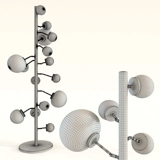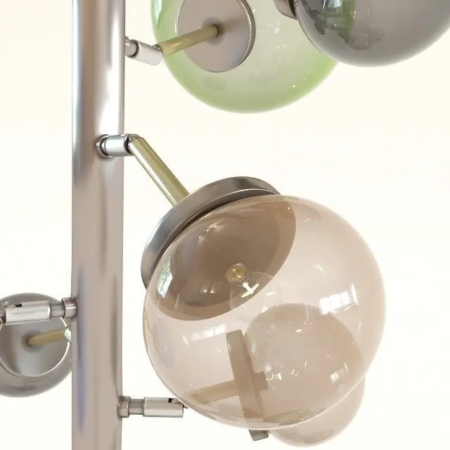 Floor Lamp Balloon Colore 15 LEDAllround success. This standard lamp with its copper-lacquered base adds colour to the ambience. Spherical design and soft lighting in special harmony. The acrylic shades are articulated. Also available in a transparent version. efficiency class A, 230 V, 50/60 Hz, illuminant make LED, bulb fitting E14, number of illuminant 15, max. 4 watt, without illuminant, replacable illuminant