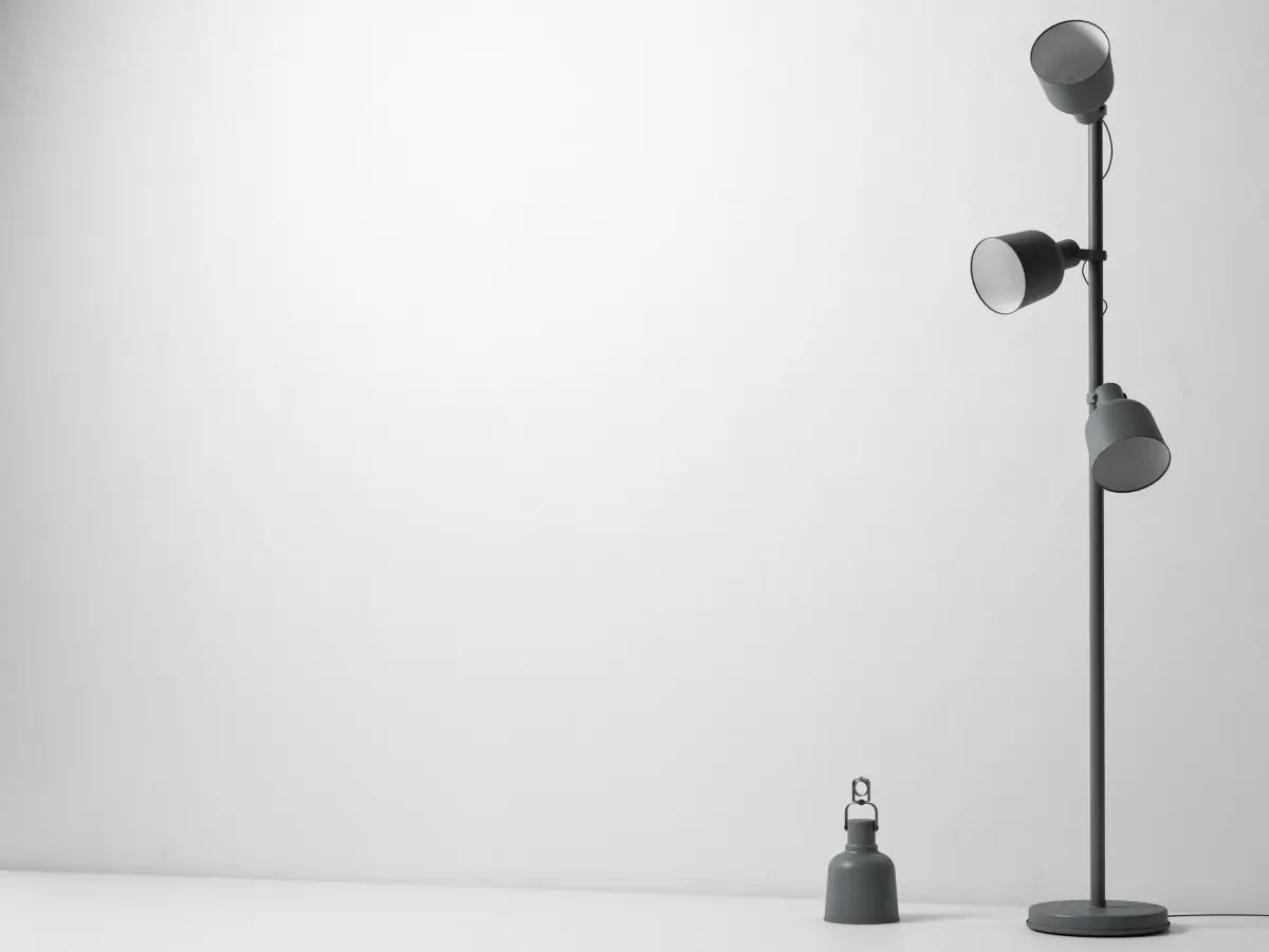 A modern floor lamp which features 3 light heads with can be manually adjusted in height and rotation to suit the needs of the 3D scene.