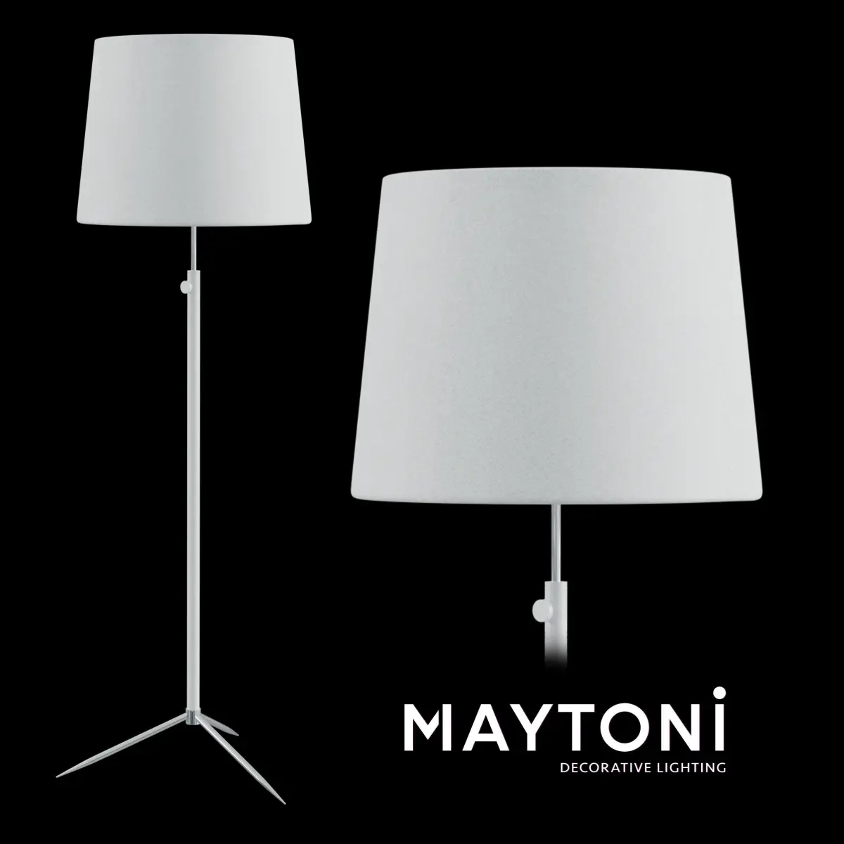 Floor lamp Monic MOD323-FL-01-W Maytoni ModernMetal frame. Telescopic tube enables to adjust base height. PVC lampshade is covered with cloth. Dezente Stehleuchte mit höhenverstellbarem Teleskoprohr. PVC-Lampenschirm mit Stoffbezug.Series: MonicCollection: ModernStyle: Maytoni ModernType of lamp: Floor lampHeight, mm: 1600Number of bulbs: 1Cap: E27Power: 40WFrame material: Metal Colour: White + ChromeLampshade:Material of shade: Fabric on PVCTop diameter, mm: 280Bottom diameter, mm: 450Height, mm: 320