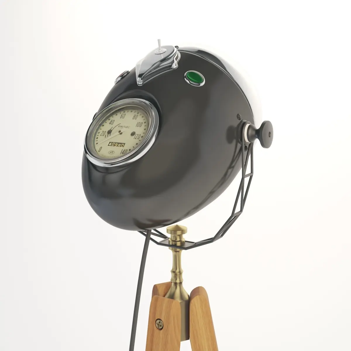 When creating a floor lamp, only the rare motorcycle brands IZH or Voskhod are used. These models were produced from 1960 to 1980. The headlight retains all original parts. Note the speedometer, which still remembers the real mileage of the motorcycle. The headlamp as one of the main parts of the motorcycle was used in its operation. Therefore, some of the defects remain with the headlamp even after a painstaking restoration and make up its unique individuality. Guaranteed your floor lamp will be one of a kind. Handmade!