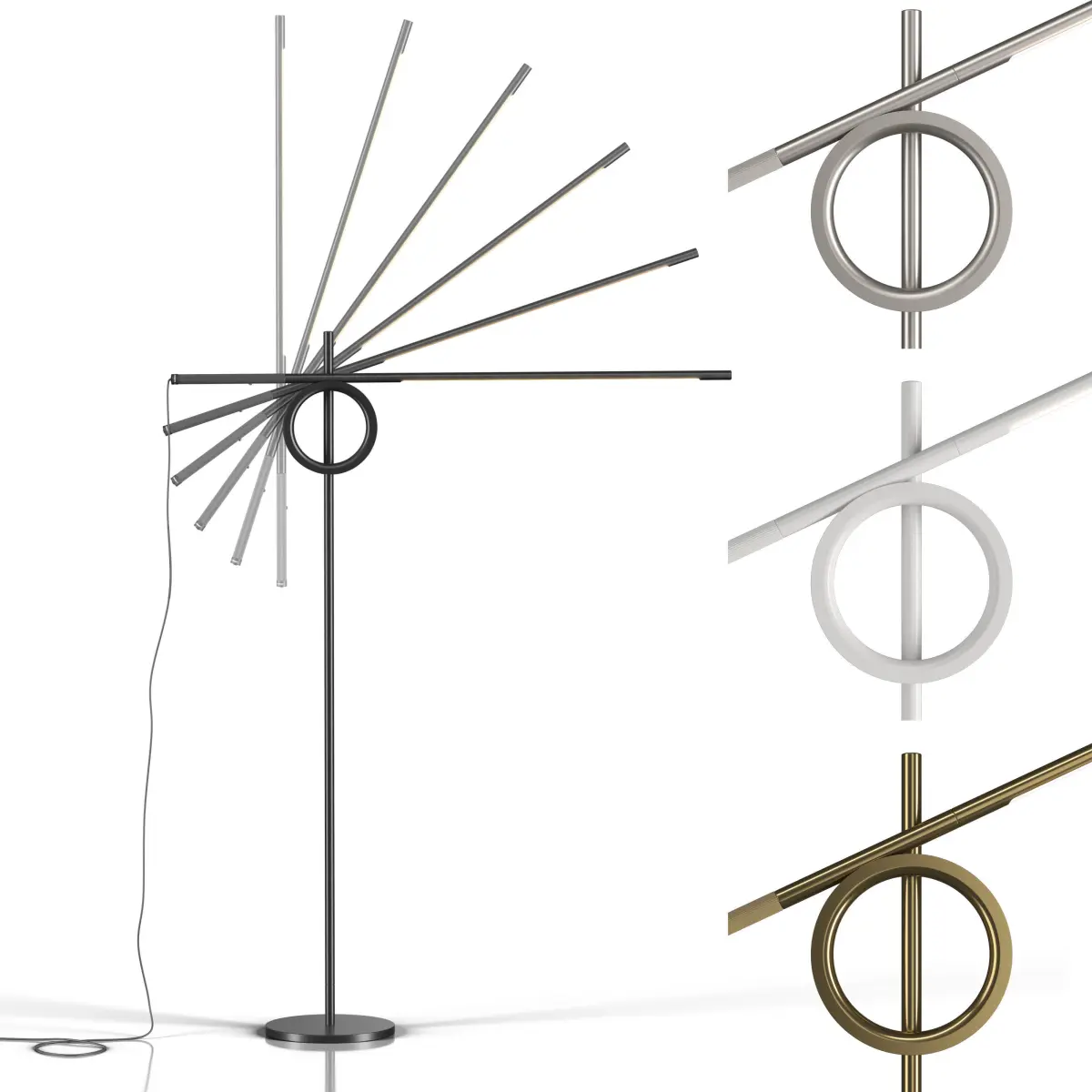 The scene contains all 4 luminaire finishes.Carefully - the morph for the wire is set to 4 positions + -90 and + -45 degrees.all you need is to turn the 'helper' in the center of the ring (for convenience) and set the desired value for the wire in the morfer