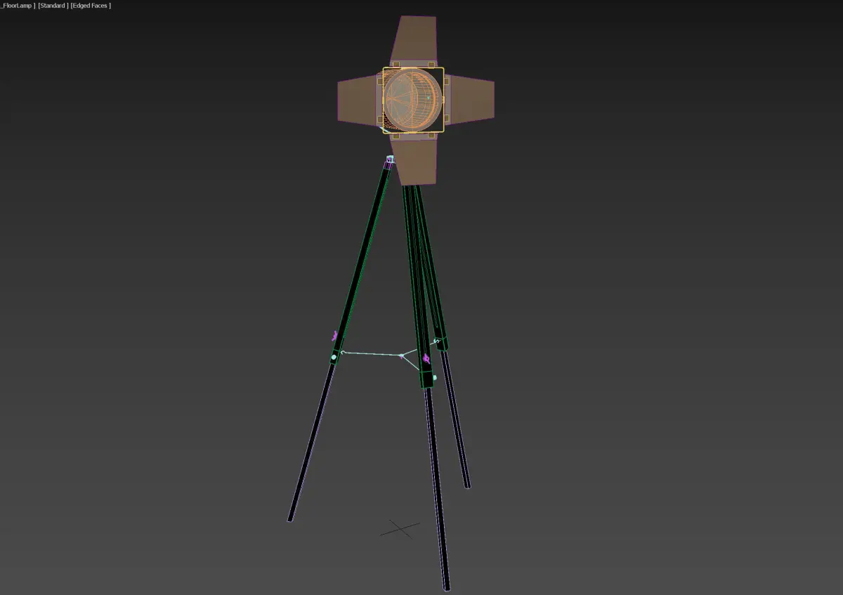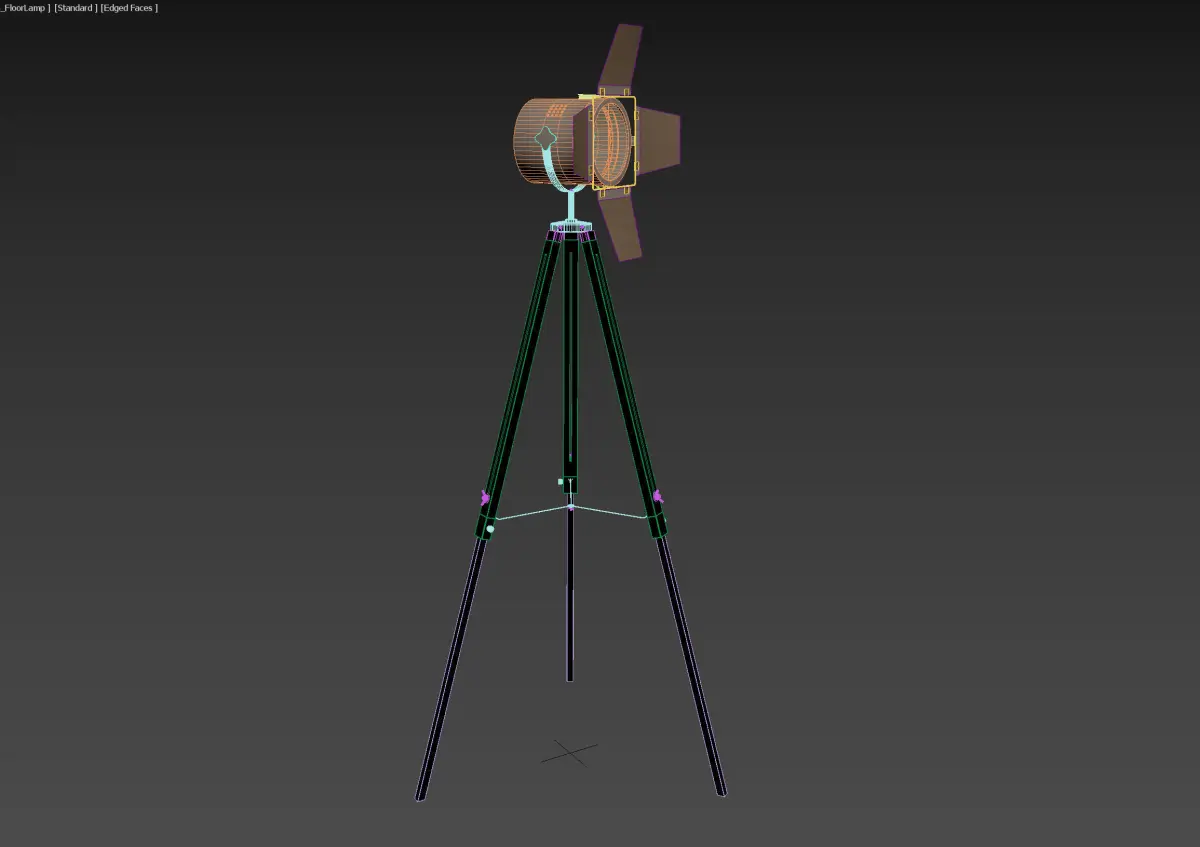 Floor lamp on tripod, accurate 3D model based on real world design.