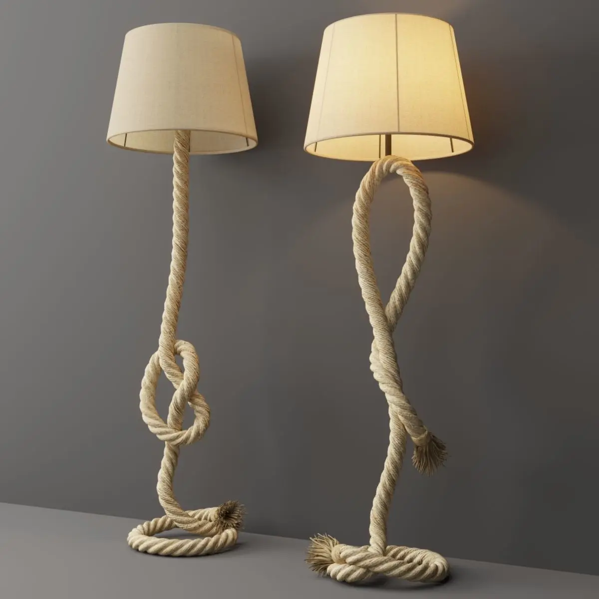 CHARACTERISTICSArticle 41.184-2Manufacturer Loft-ConceptType Floor LampColor Beige GrayMaterial Jute, Metal, LinenWidth 45 cmDepth 45 cmHeight 160 cmType of lamp 1 x E27 x 60WScandinavian style /Place of useoffice / reception / dining room / kitchen / bar, cafe, restaurant / lounge /