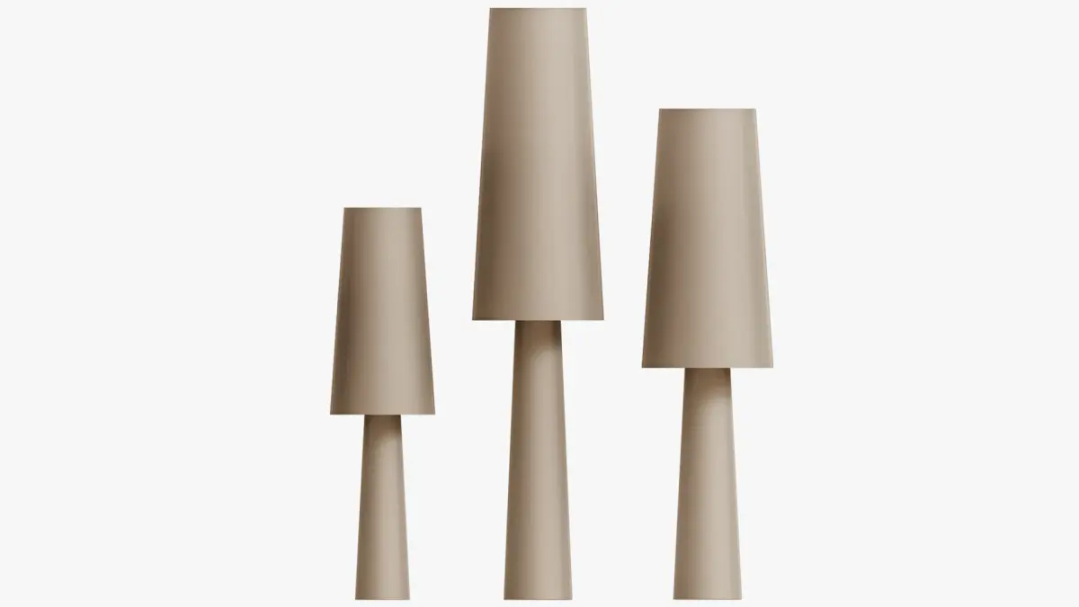 A series of floor lamps with a trapezoidal lampshade made of white textileArticle:rudvald01