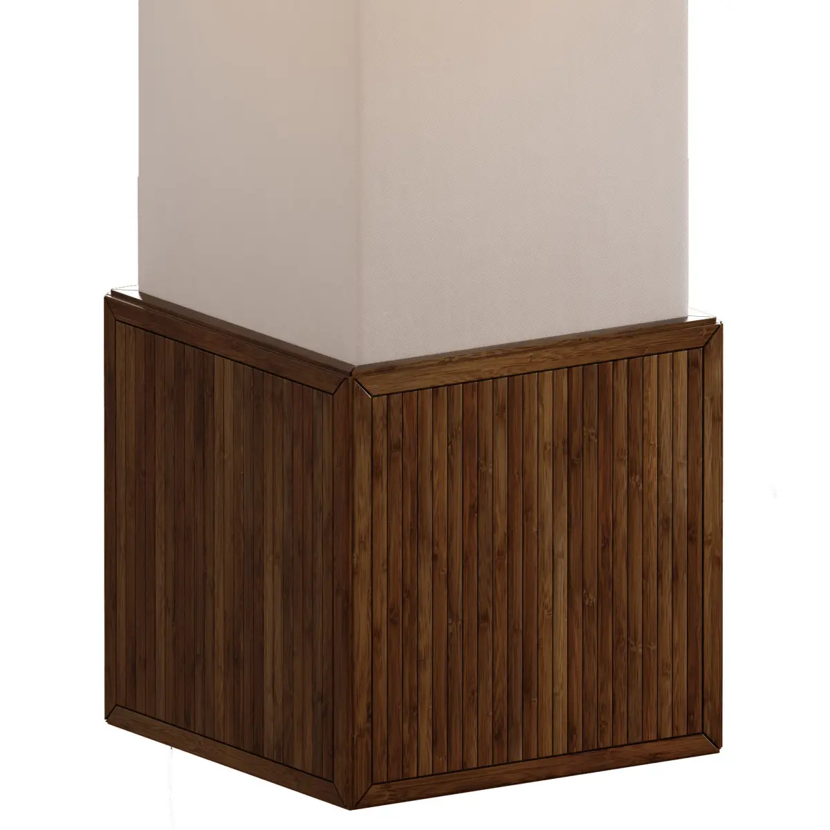 Description of the manufacturer:The Sebu floor lamp combines the look of a lantern with the convenience of a foot step switch. The brown finish of the square bamboo base introduces a natural element that is enhanced with the clean white linen shade. Dual sockets hold up to 100 Watts each. Change from brighter ambient illumination to more mood lighting by changing your bulbs to those with lower lumens. A convenient foot step switch turns the lamp on and off. This lamp has a clear cord and is smart outlet compatible.