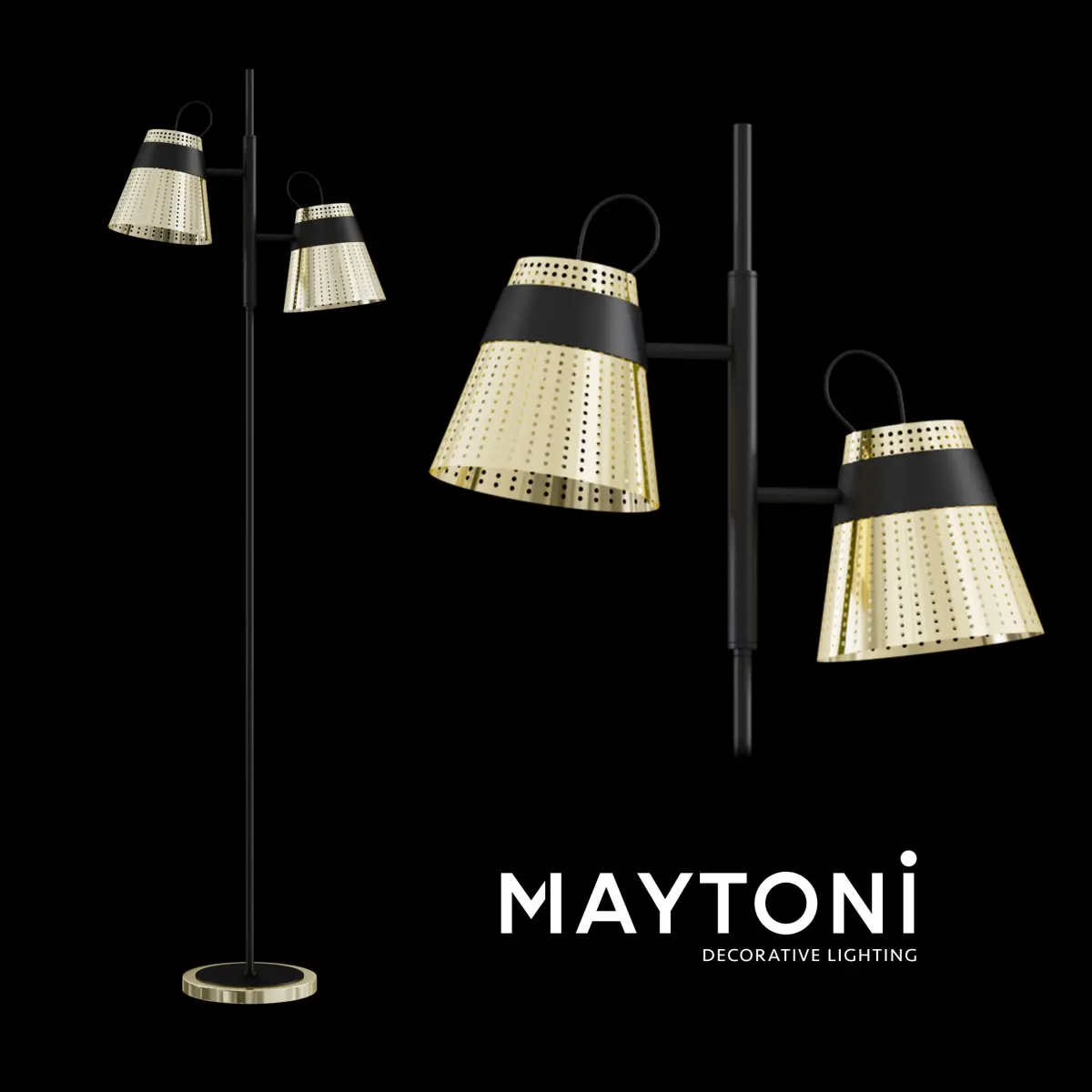 Floor lamp Trento MOD614FL-02BS Maytoni ModernFrame and decorative lampshade made of perforated metal with black decorative elements. Rahmen und dekorativer Lampenschirm aus perforiertem Metall mit schwarzen Zierelementen.Series: TrentoCollection: ModernStyle: Maytoni ModernType of lamp: Floor lampHeight, mm: 1620Width, mm: 450Depth, mm: 450Number of bulbs: 2Cap: E27Power: 40 WFrame material: MetalColour: BrassMaterial of shade: Metal