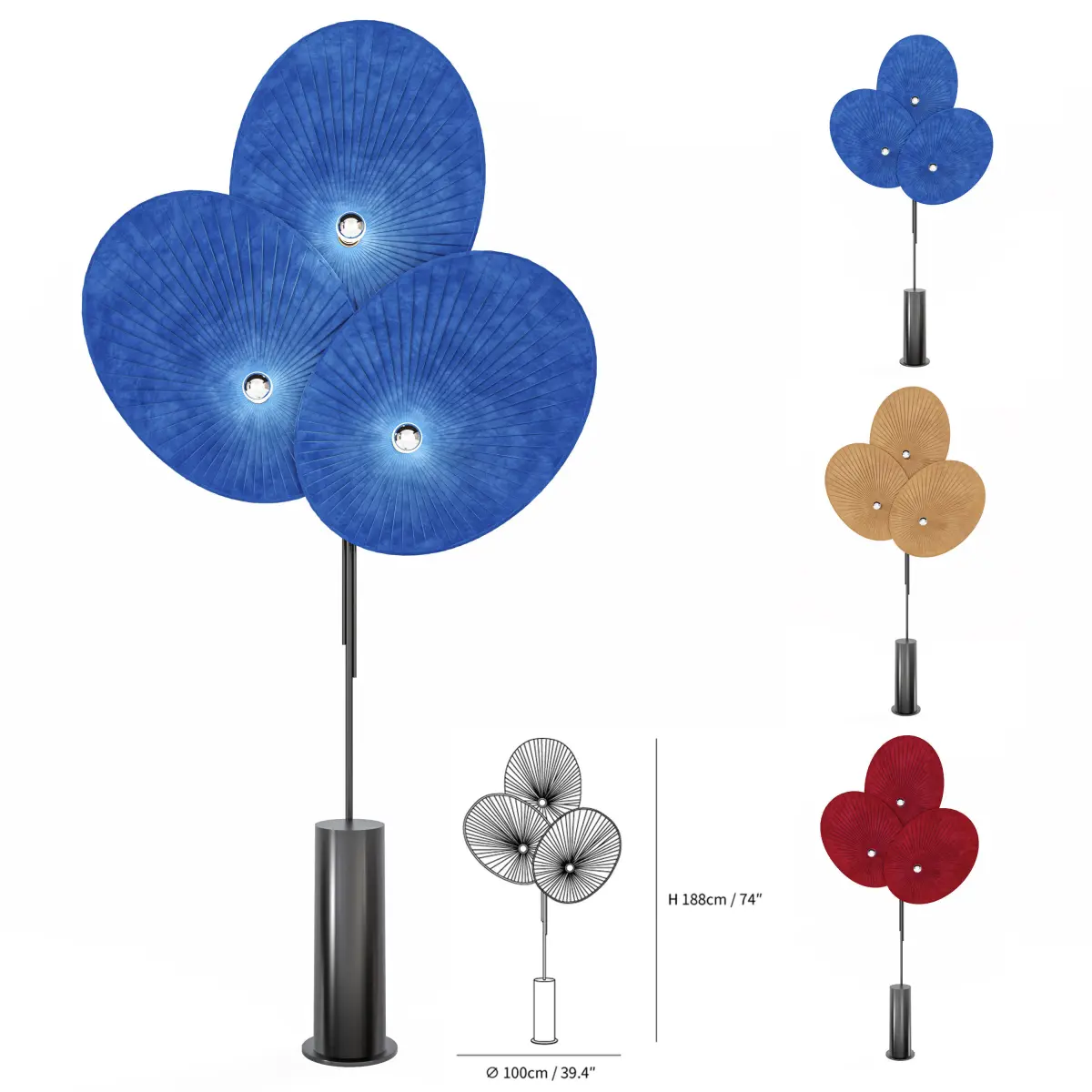 Floor Lamp UNFOLD - Roche BoboisFloor lamp in black lacquered steel with black base, three reflectors in hand pleated fabric.Designer Alexandre Dubreuil.W. 100 x H. 188 x D. 20 cm465243 (1395729) polys465204 (139612) vertsFormats: 3Ds Max 2015+OBj