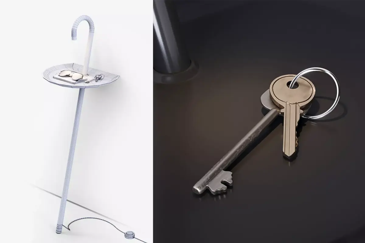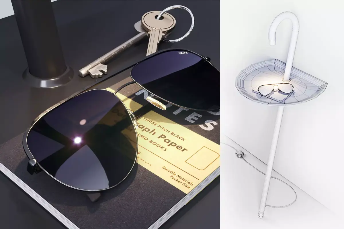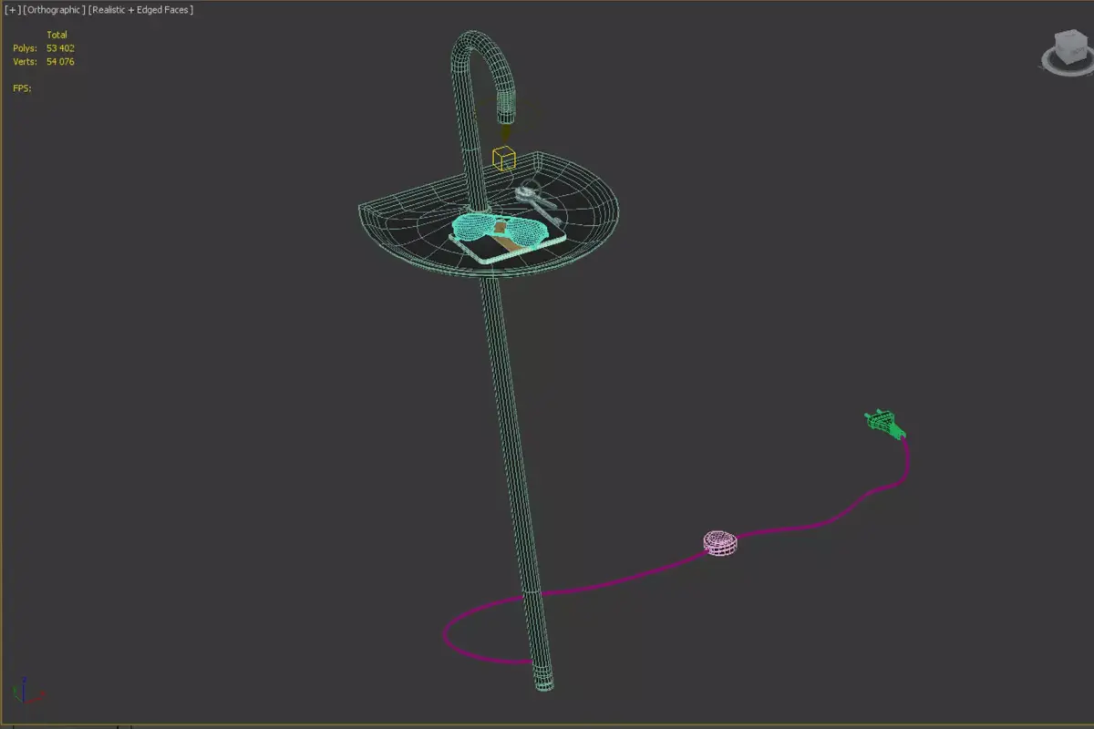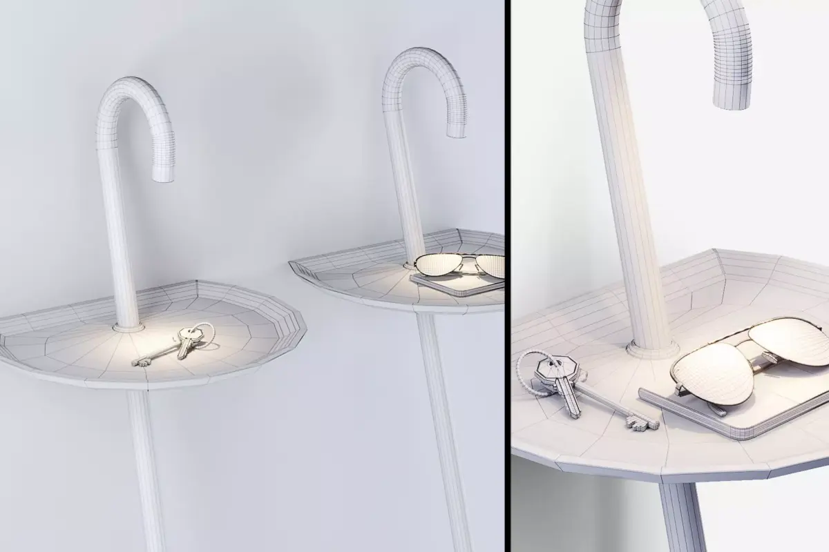 Floor lamp with shelf, lighting, and decoration for interior visualization.