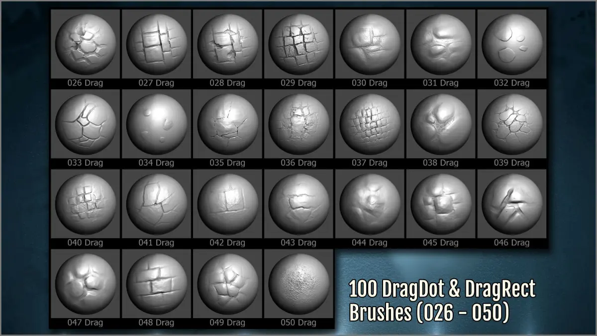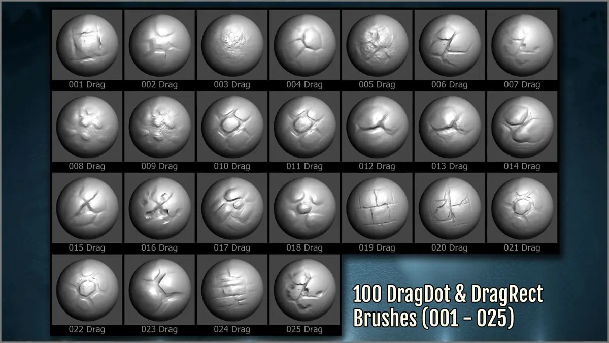 The ZBrush brushes include different kind of brushes:
