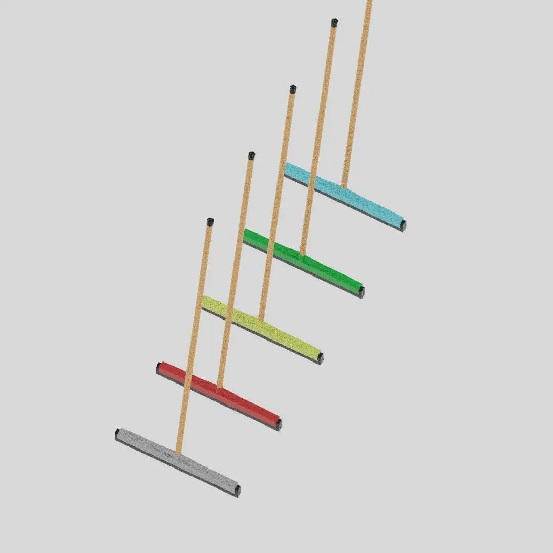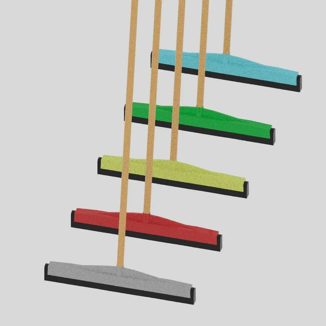 A 3D model for a Floor Squeegee Rubber MOP of different extensions. It is a tool with a flat, smooth rubber blade, used to remove or control the flow of liquid on a flat surface. It is used for cleaning and in printing. Simple squeegees are made in various shapes for household use, including the cleaning of shower doors, bathroom tile, and garage floors.