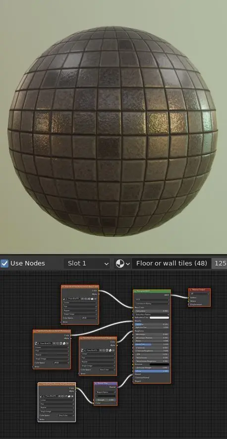 - The procedural shader node for the tiles I created to bake this texture set (*.blend)