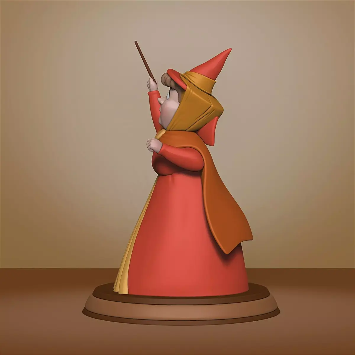 Flora is the red fairy in Sleeping Beauty and the leader of the three fairy godmothers who protect Princess Aurora. Known for her commanding presence and determined spirit, Flora often devises the plans and guides the group through every challenge. She carries deep affection for Aurora, always prioritizing the princess’s safety and happiness, even if it means sacrificing her own comfort. Despite her serious demeanor, Flora has a warm heart and a charming, humorous side, especially during her playful disagreements with Merryweather. Her magic revolves around red hues and radiant light, symbolizing love, protection, and unwavering courage. Flora embodies devotion, maternal love, and the grace of a protector who stands strong against darkness.