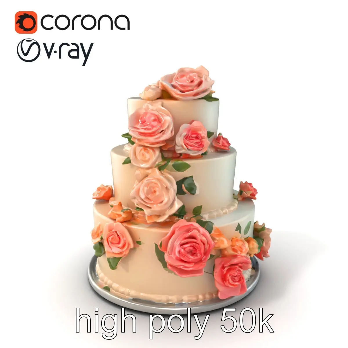 Each model has 3 levels of detail: low-poly, middle-poly, and high-poly, which allows for the use of this model in production rendering (such as 3ds Max, Maya, Cinema4D, Blender, Vray/Corona/Cycles, and all others), game engines (Unity and Unreal compatible), and interactive presentations, providing a choice of detail based on the LOD System principle. Perfect for digital bakery displays, wedding planning software, and culinary arts applications.