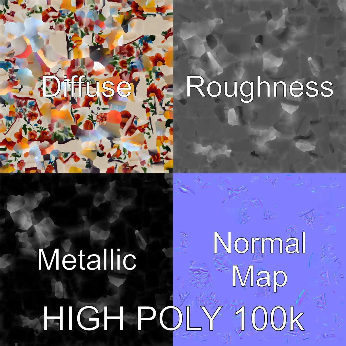 The model's textures are PBR, Diffuse, NormalMap, and reflection/roughness/metallic, suitable for any modern rendering engine. All models are accurately unwrapped with no overlapping UVs.