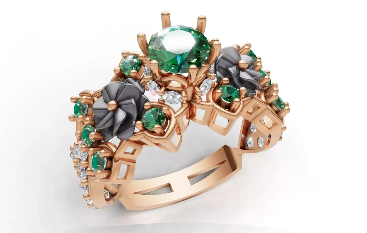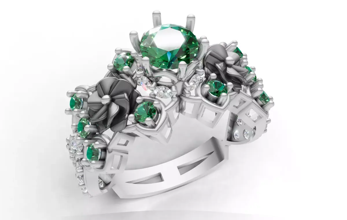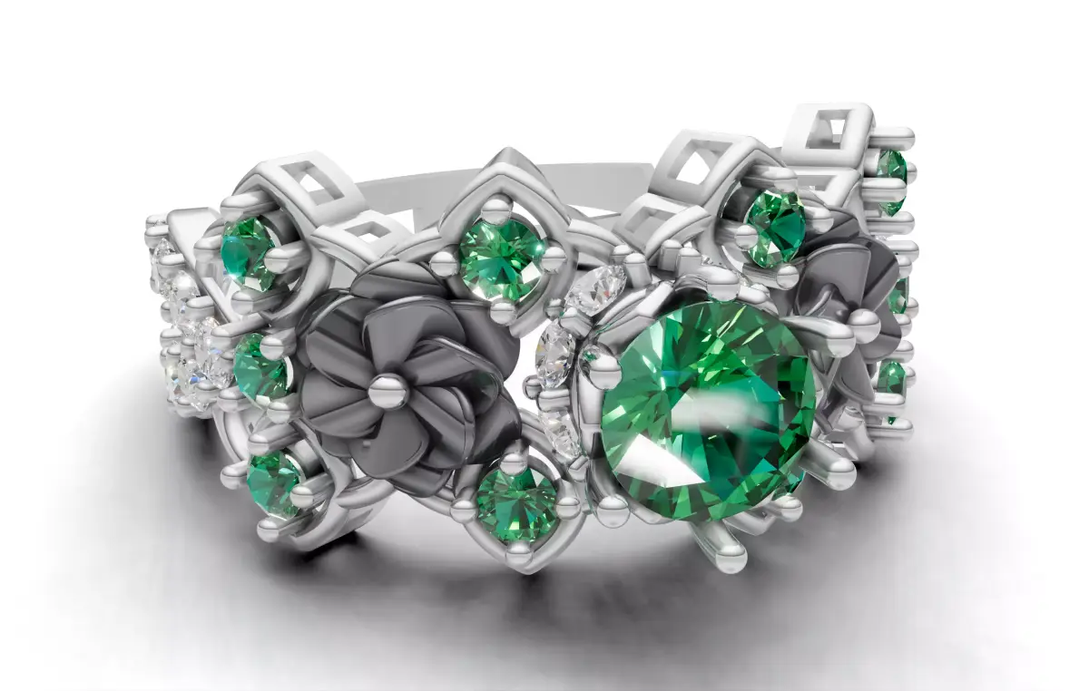 An opulent, high-detail floral statement ring 3D model designed for collectors and luxury brands.