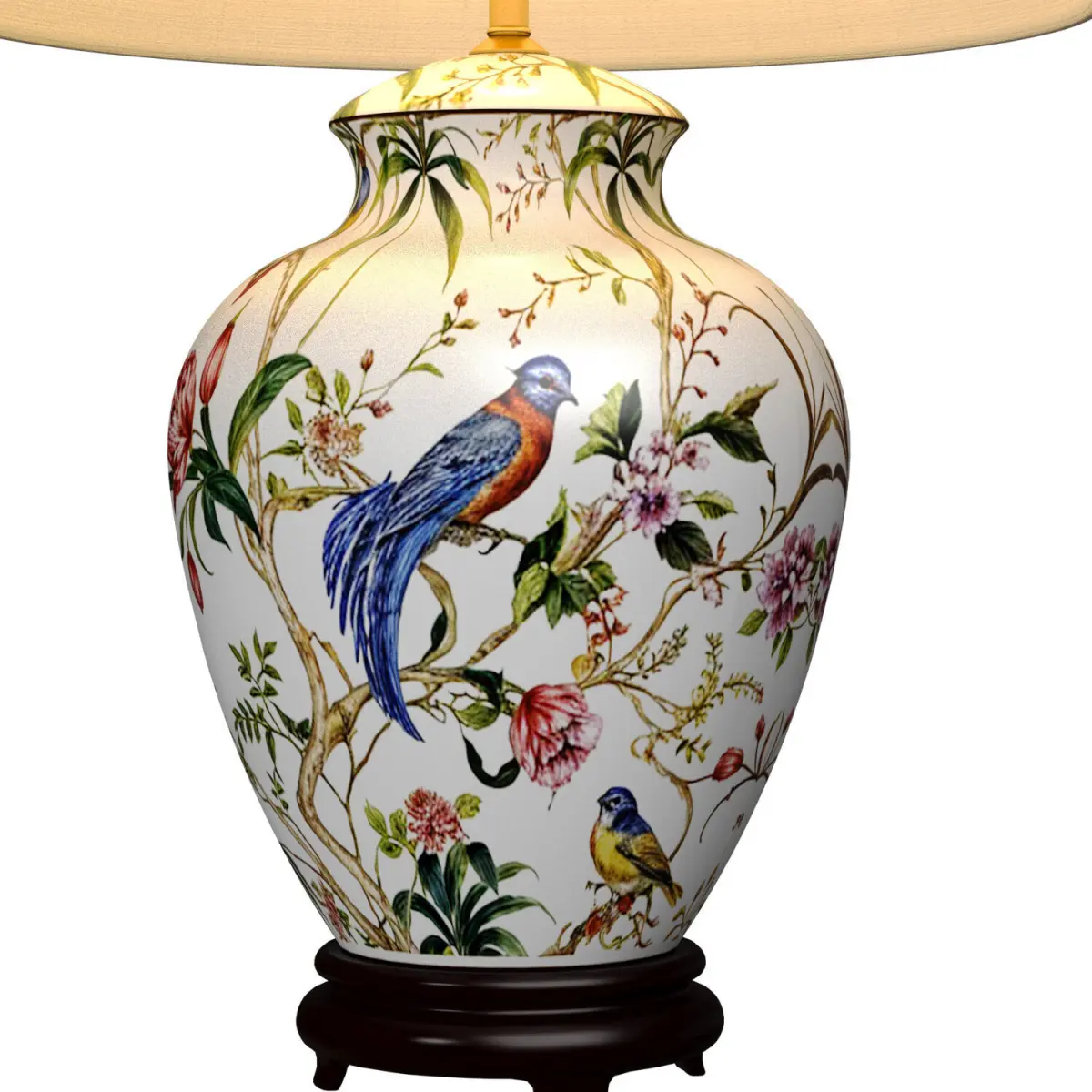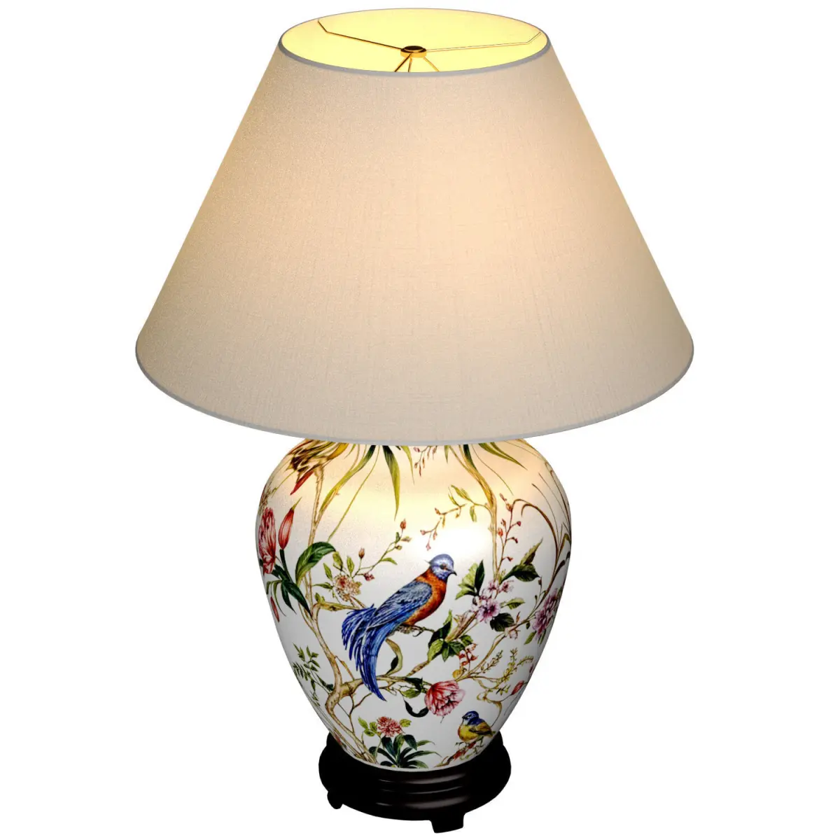 Desk Hand-Painted Flowers and Birds Ceramic Table lamp with Lotus flower pattern and fabric shade for decorating living room,office, study, bedroom, bedside table,bedside table in European style Hand-painted table lamp,ornament,Lotus flowers,European style Lamp for Home Decoration, Bedroom Lighting Asian style