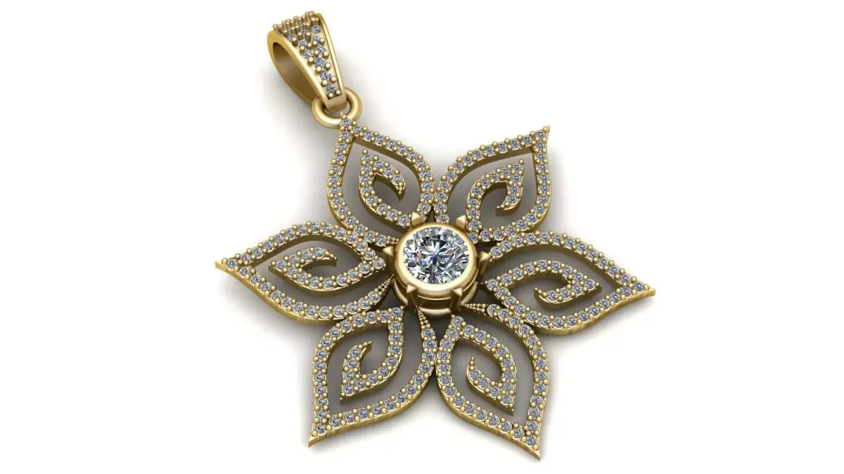 This elegant Floral Diamond Star Pendant STL features a six-petal flower design with premium diamond-style detailing and a brilliant center stone setting. Modeled with high precision, this 3D printable jewelry file is perfect for gold, silver, or brass casting and ideal for jewelers, designers, or online sellers.