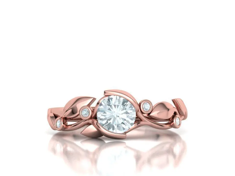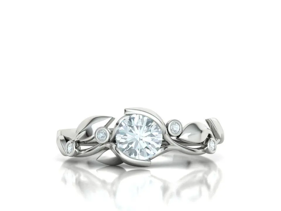 Floral Engagement Ring 6mm Stone Leaves design 3dmodel 3D print model