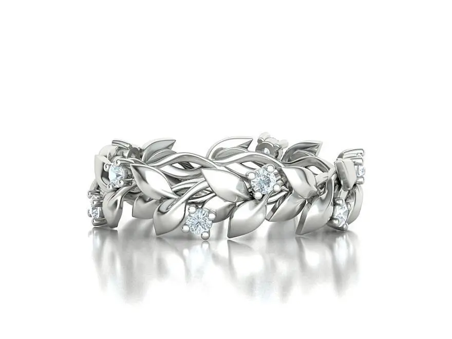 Floral Leaves Eternity Ring Nature Inspired Leaves Ring 7US 3D print model