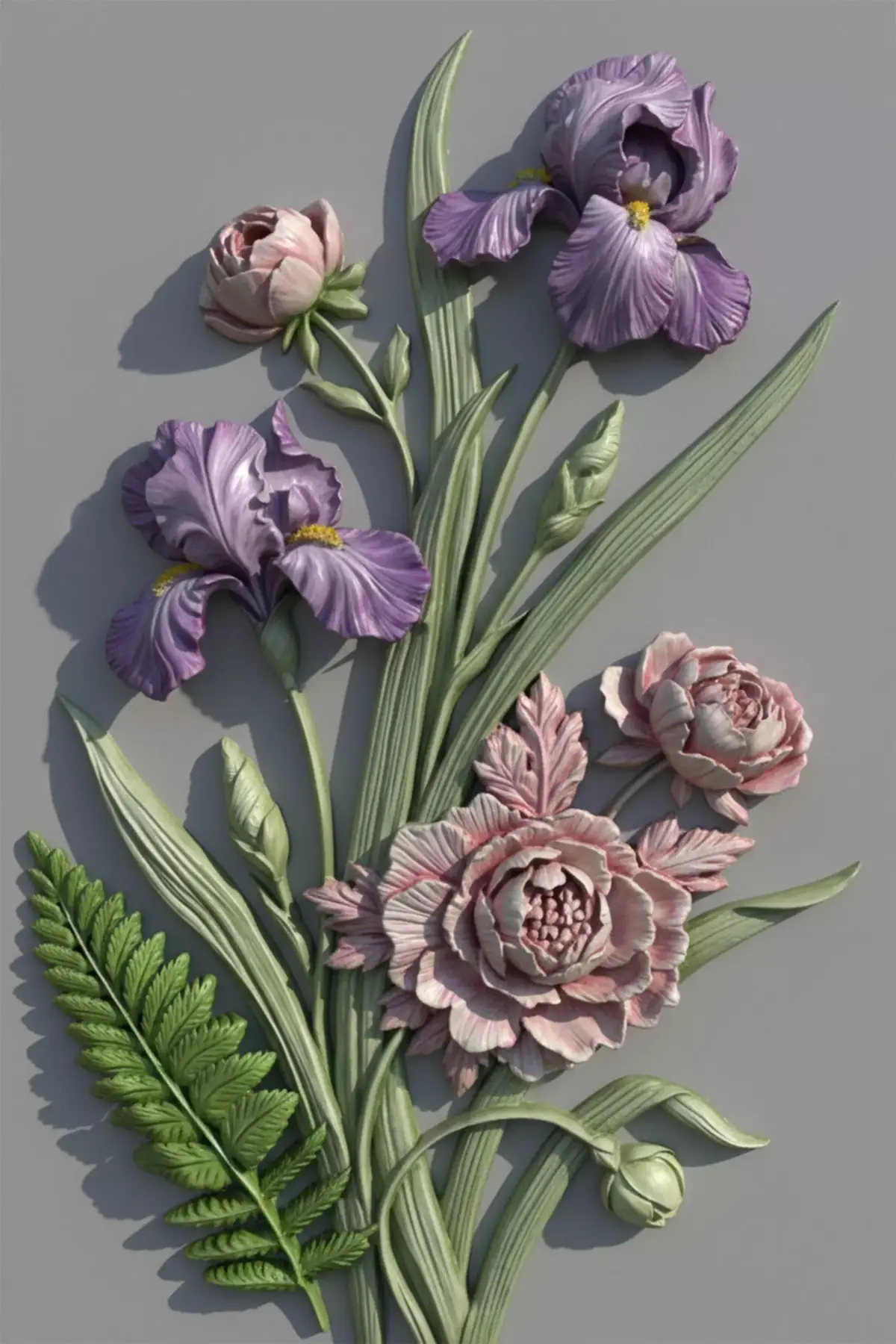 High-quality floral relief sculpture, created in ZBrush and optimized for 3D printing and visualization.Rendered in 3ds Max with Corona Renderer, using BPR-style lighting and material setup to enhance sculpted detail and surface depth.Includes all ready-to-use files and materials.