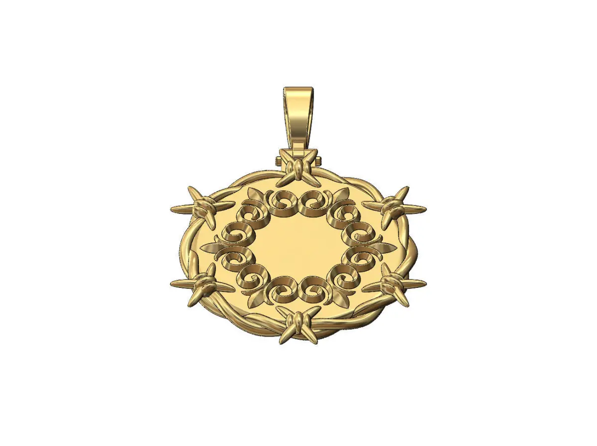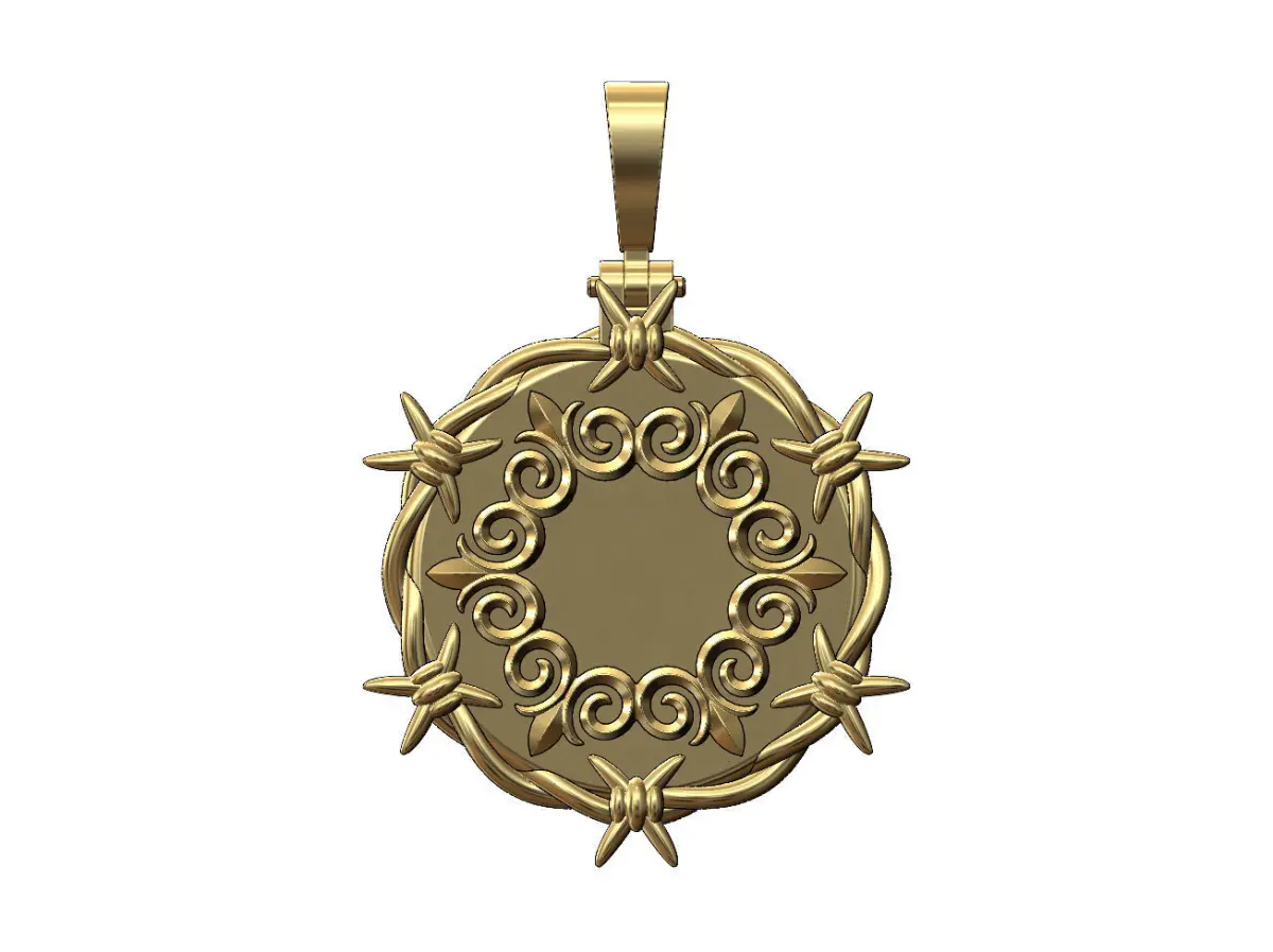 Floral scroll ornament barbwire thornes pendant with bail