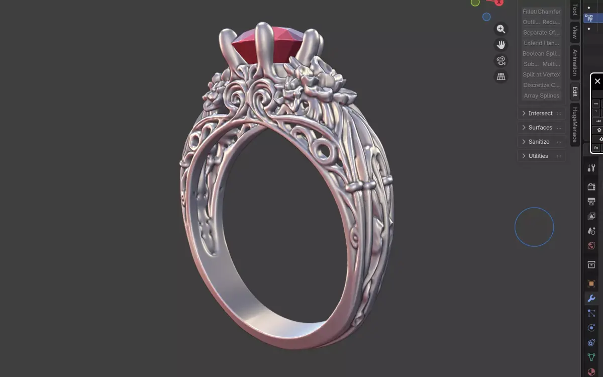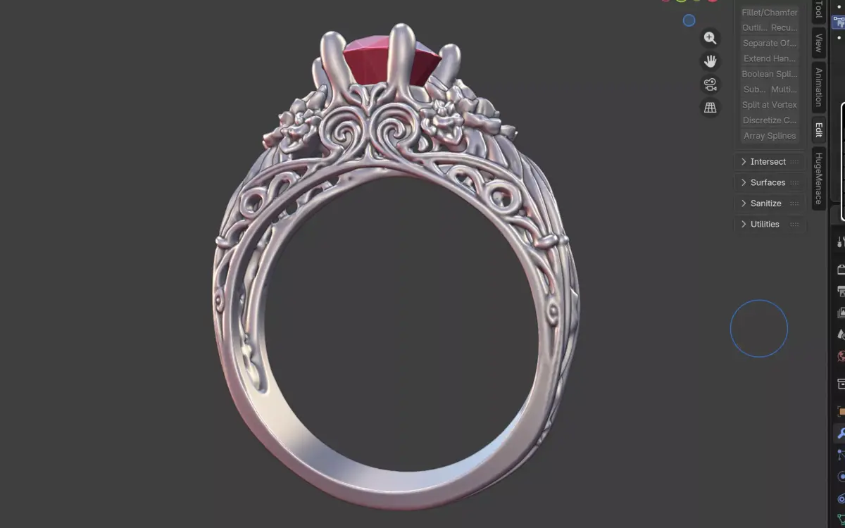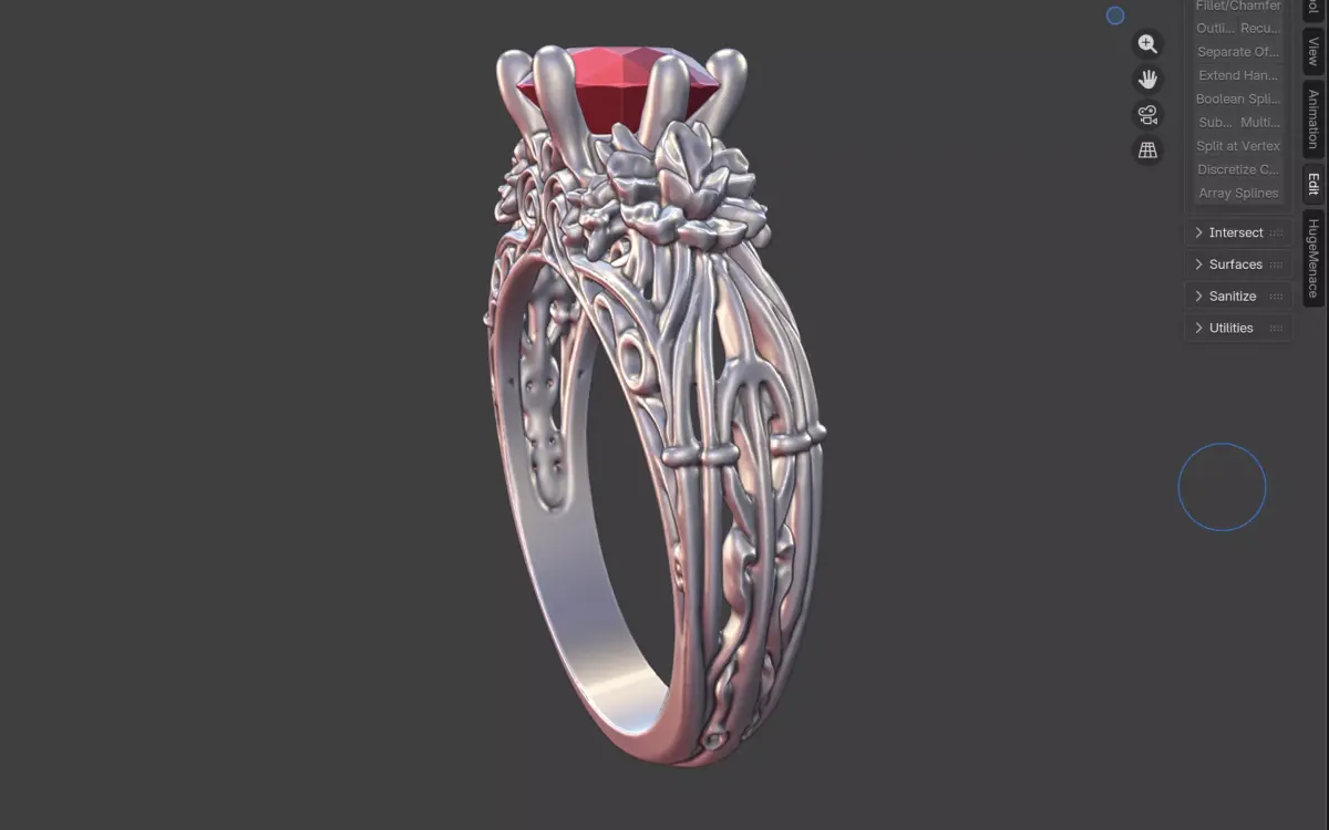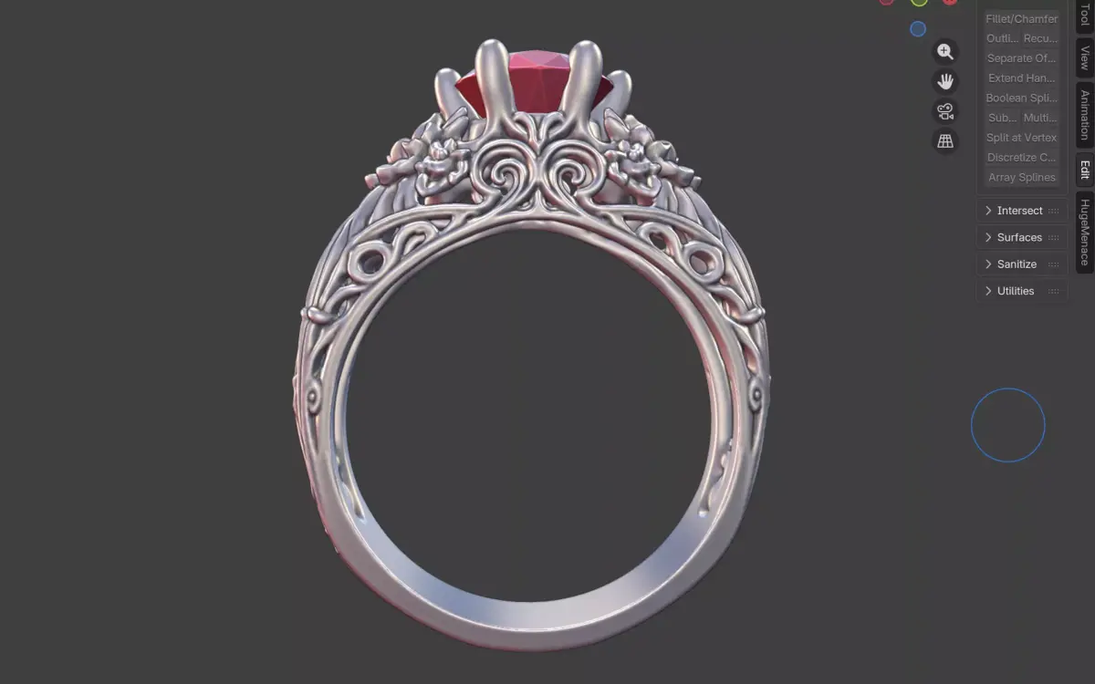 Designed with smooth transitions, crisp edges, and realistic floral textures, this model is optimized for high-resolution 3D printing and lost-wax casting. The delicate scrollwork and floral accents add visual depth without compromising structural integrity, making it ideal for jewelers and collectors seeking a romantic, nature-inspired engagement piece.