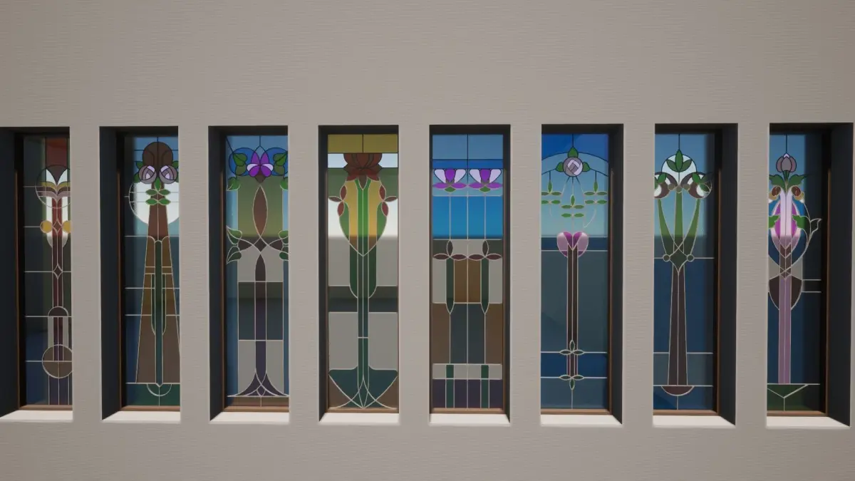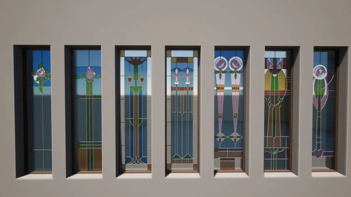 15 Stained glass window generated in Revit 2020 with floral patterns.