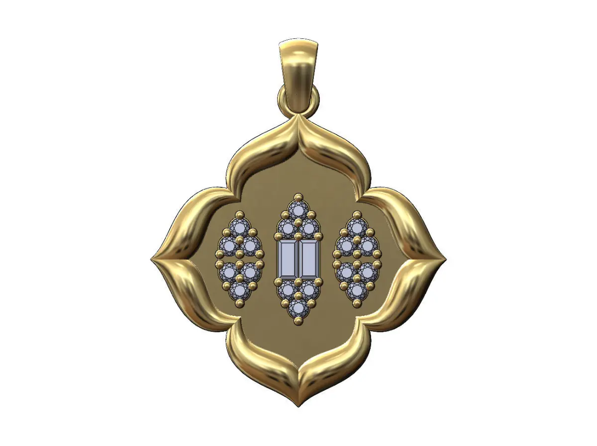 Floral window baguette and diamonds clusters pendant with bail