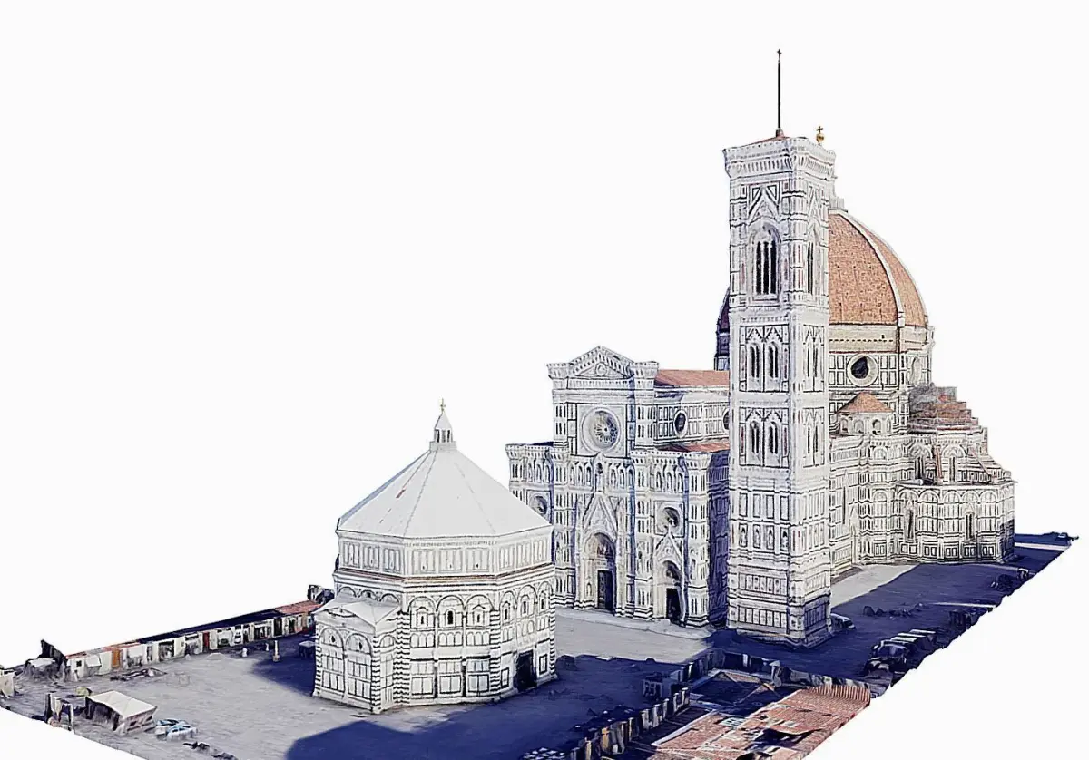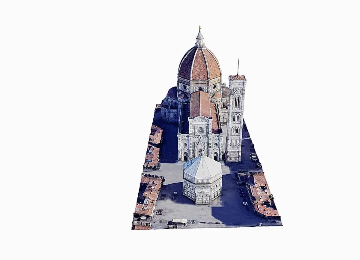 Florence Cathedral, formally the Cattedrale di Santa Maria del Fiore (Italian pronunciation: [katteˈdraːle di ˈsanta maˈriːa del ˈfjoːre]; in English “Cathedral of Saint Mary of the Flower”), is the cathedral of Florence, Italy (Italian: Duomo di Firenze). It was begun in 1296 in the Gothic style to a design of Arnolfo di Cambio and was structurally completed by 1436, with the dome engineered by Filippo Brunelleschi.[1] The exterior of the basilica is faced with polychrome marble panels in various shades of green and pink, bordered by white, and has an elaborate 19th-century Gothic Revival façade by Emilio De Fabris. The cathedral complex, in Piazza del Duomo, includes the Baptistery and Giotto’s Campanile.