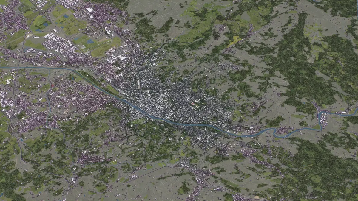 - Integrated Urban Features — Custom placement of buildings, roads, and vegetation on the terrain
