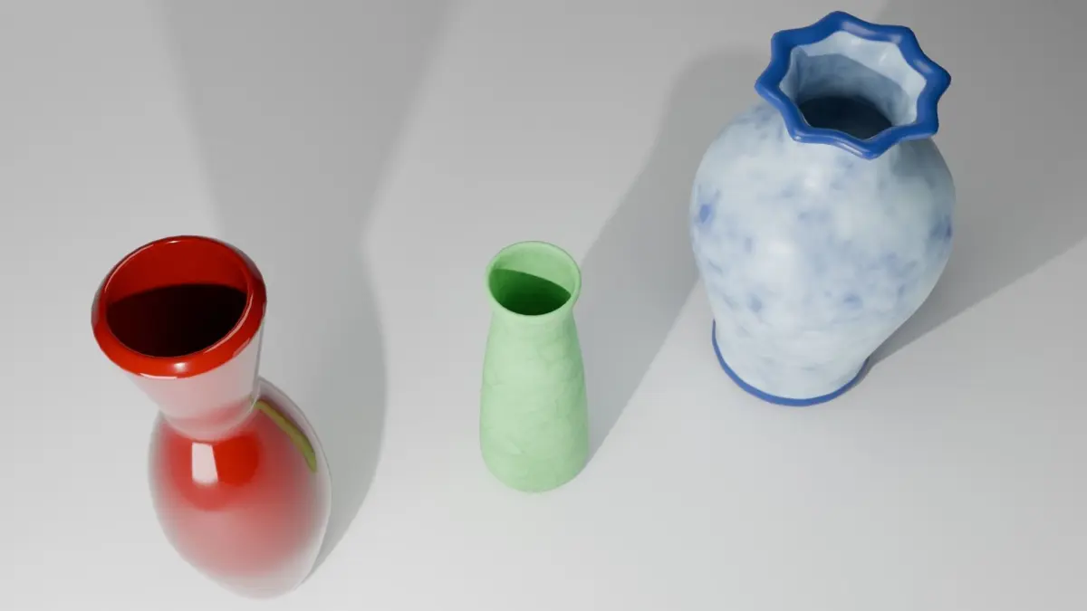 Modelados 3D de 3 floreros realizado en blender. Archivos en blend,obj y fbx.