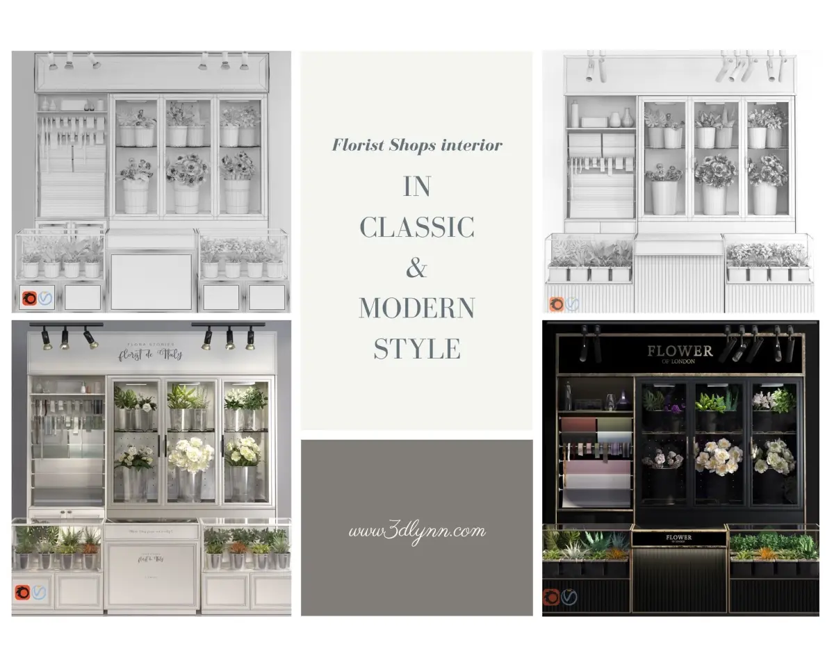 Amazing Florist Shops Collection includes realistic 3d models from 3DLynn for Shops/Stores/SuperMarket inspiration and decoration. High-end 3D content for interior design.