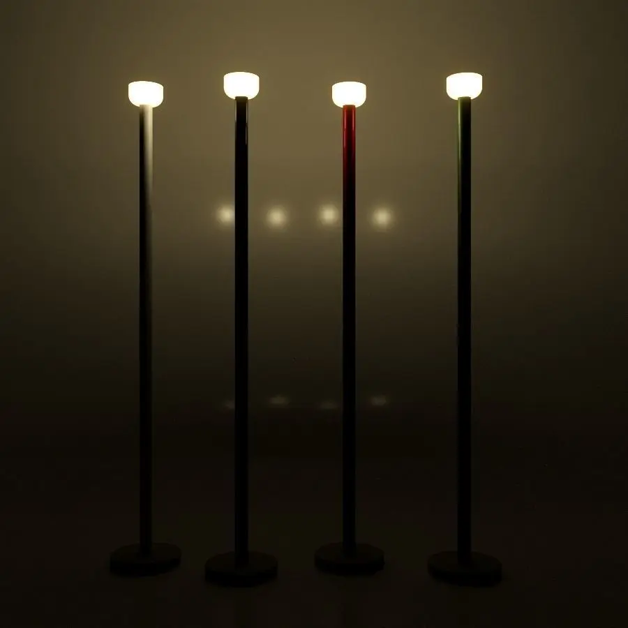 Floor lamp with indirect light. Concrete base. Stem in white, brick, chocolate, green glossy painted aluminum. Reflector in opal glossy white and gray blown glass. Electric cable useful length 270 cm