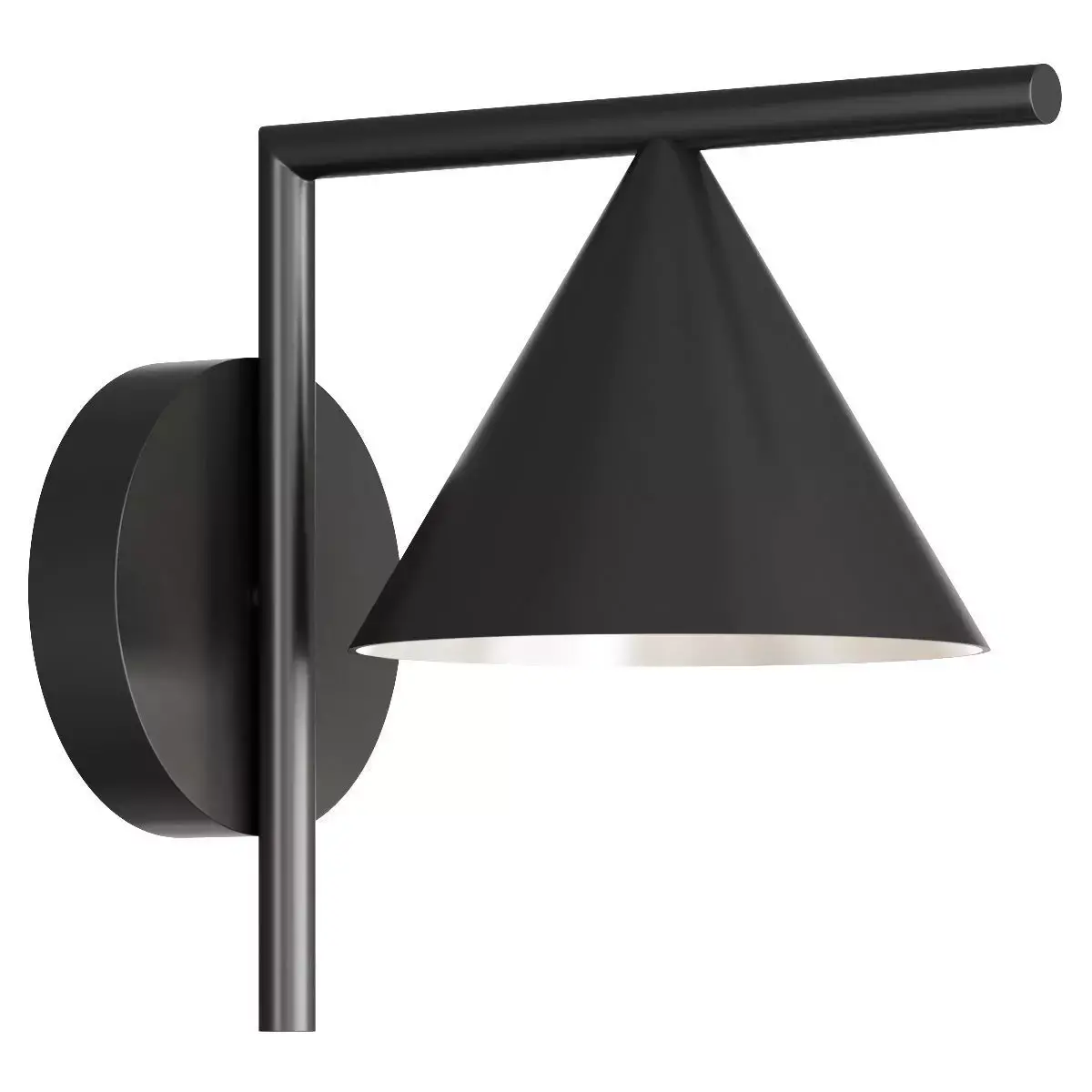 This is a premium 3D model of the Flos Captain Flint Outdoor W1 wall sconce, a modern lighting fixture designed by Michael Anastassiades in 2015. The model accurately captures the lamp's unique and elegant design, featuring a cone-shaped head and a straight arm that extends from a circular wall mount. The head is fixed and provides a diffused, ambient light.