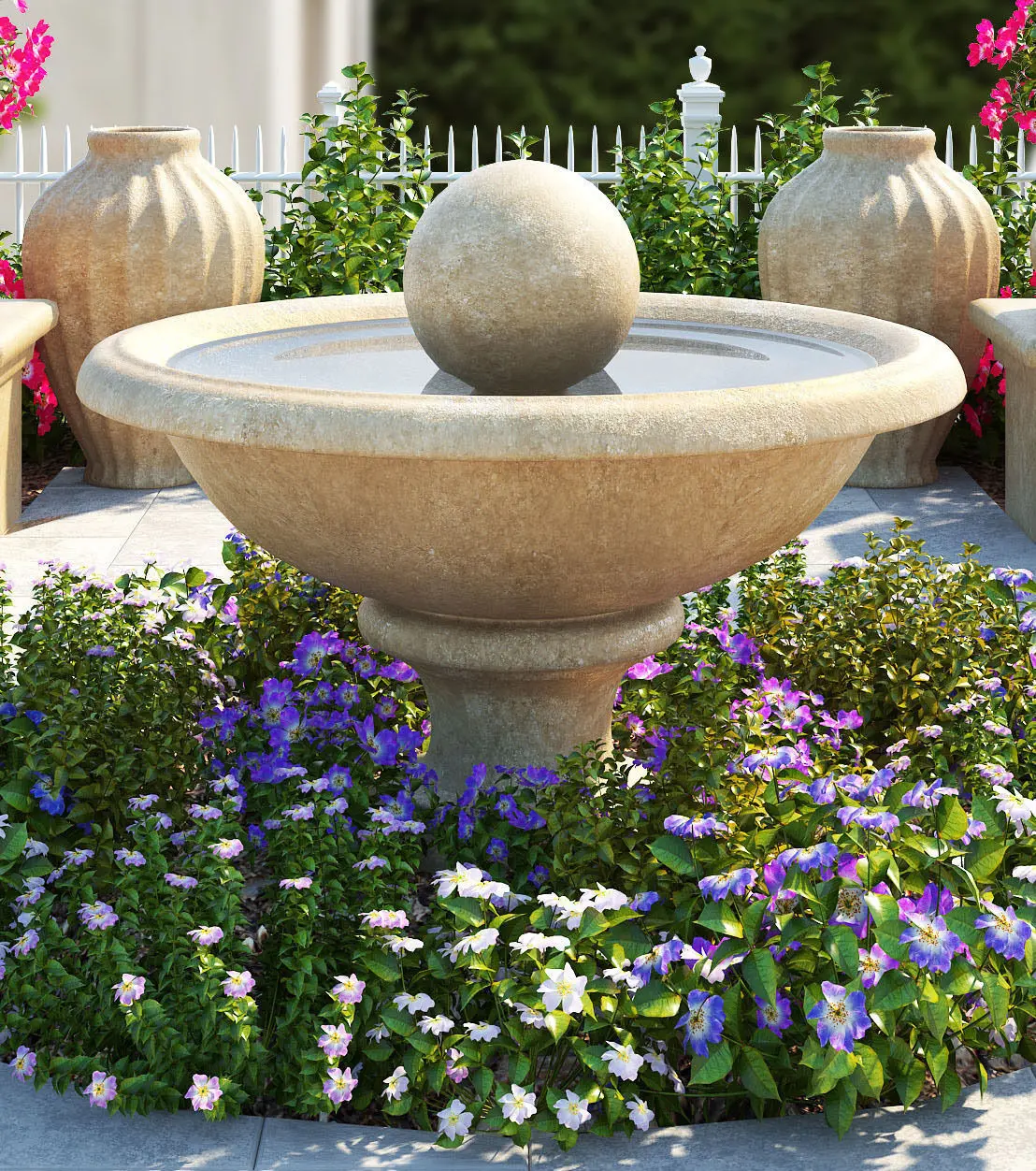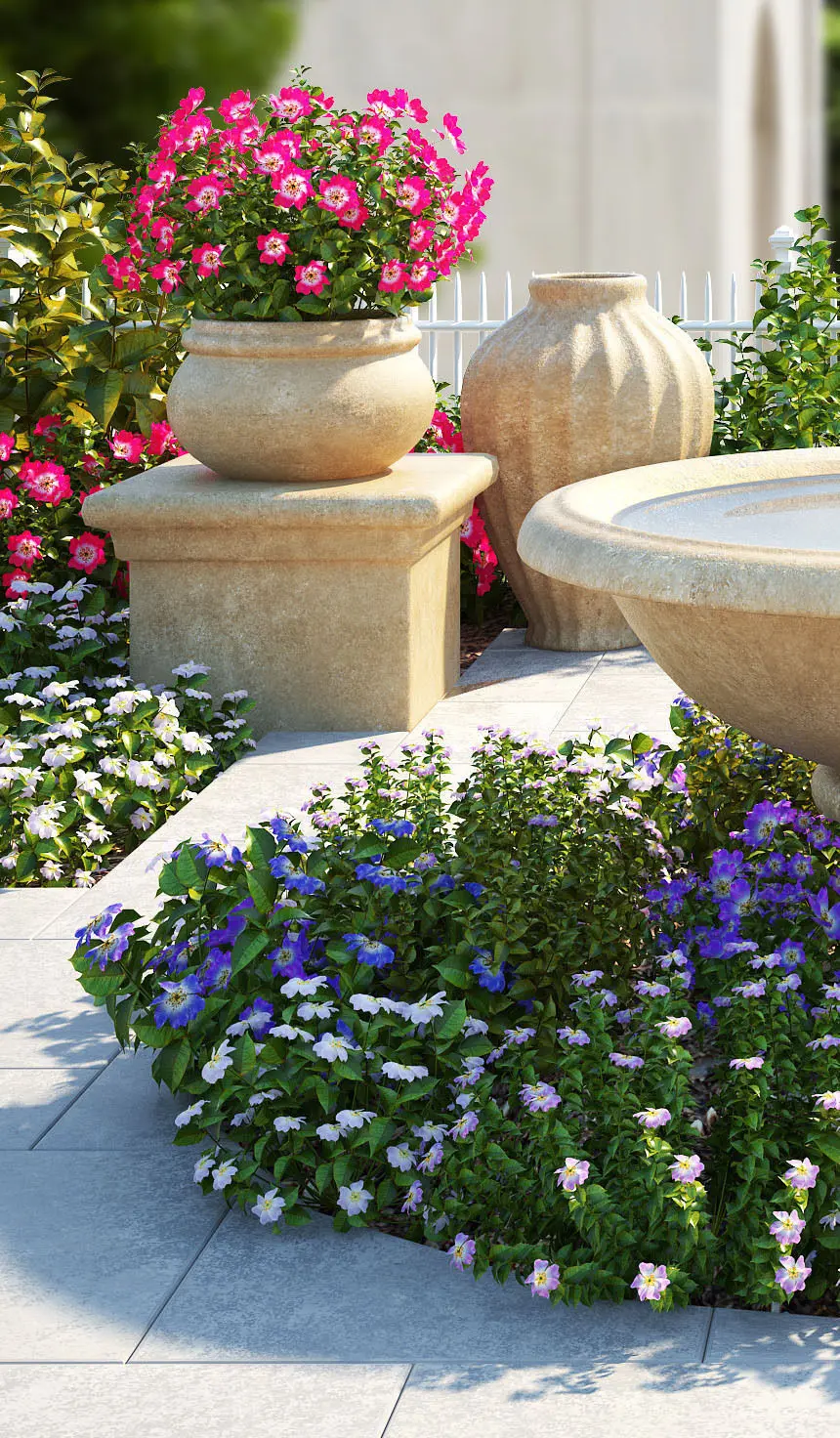 flower bed 2 is a complete package of garden area which contains plants with colorful flowers variety of plants,also small plants in a huge vases,and also decorative water pot fensas and also a wild walking area too.. designed completely in 3dsmax