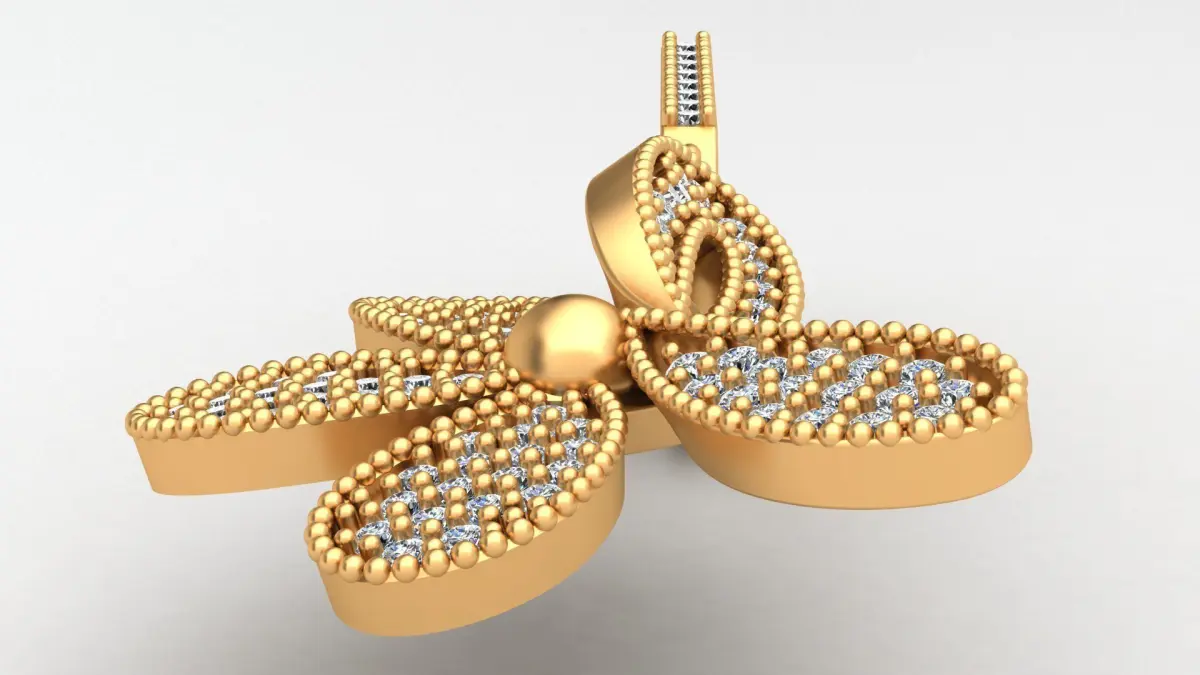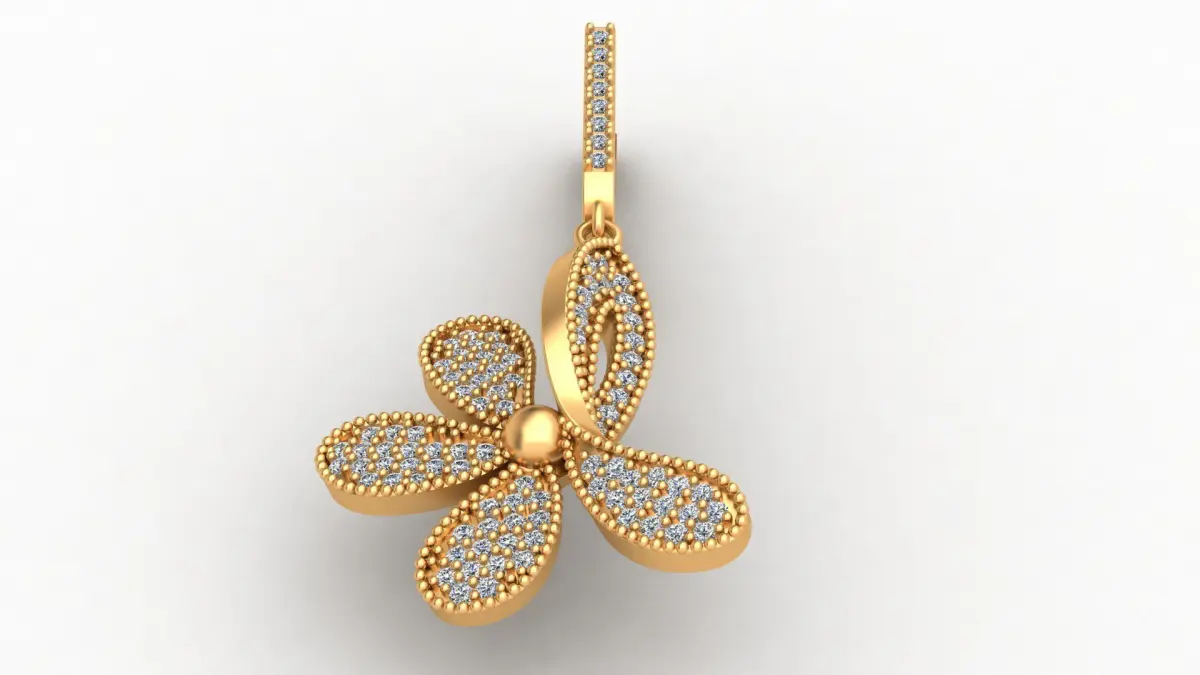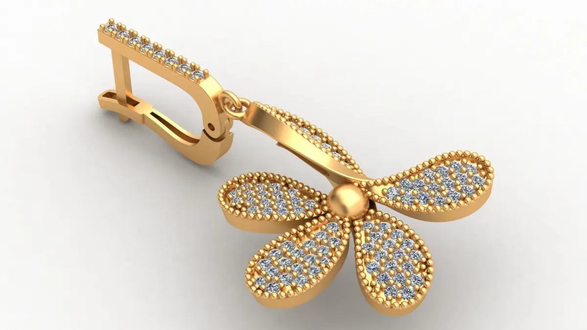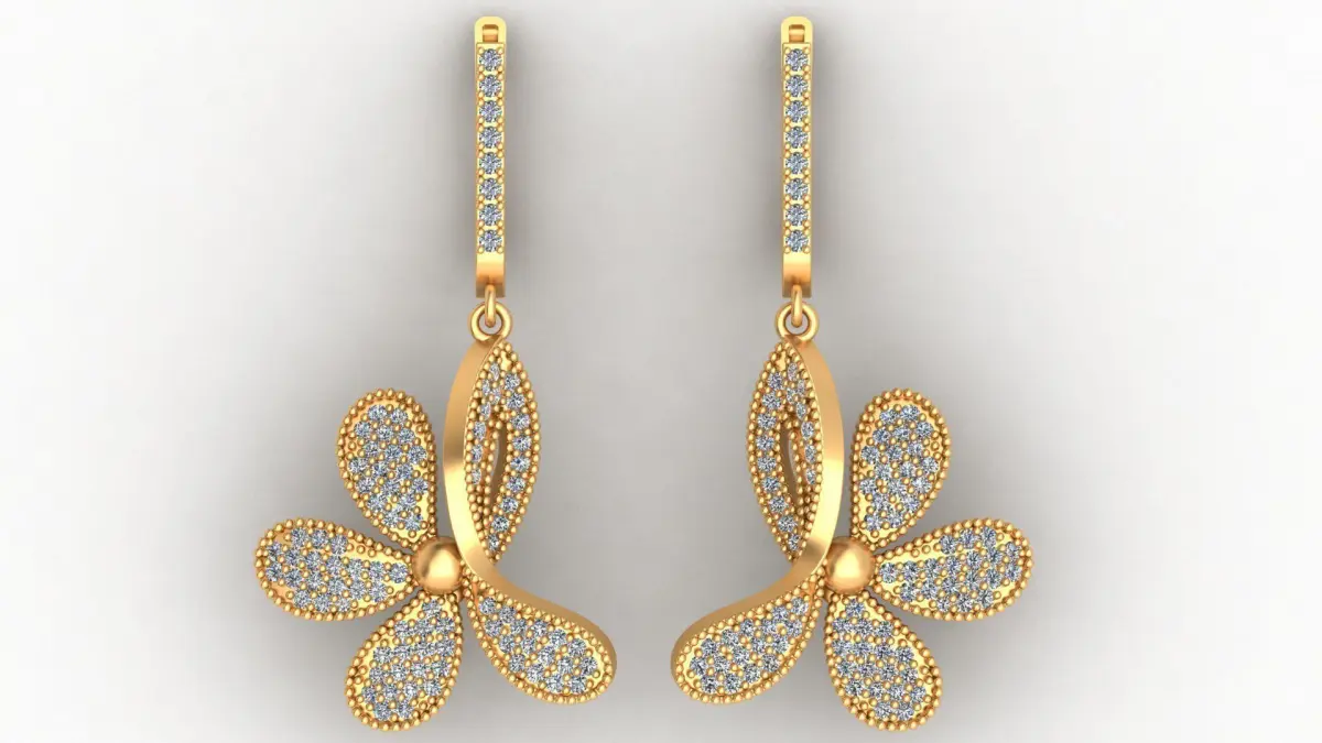 Flower Butterfly Style Diamond Gold Earring 3D print model